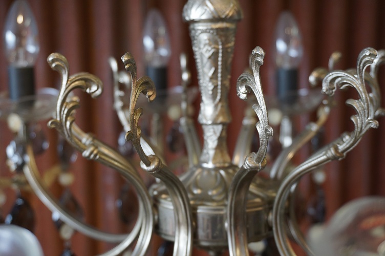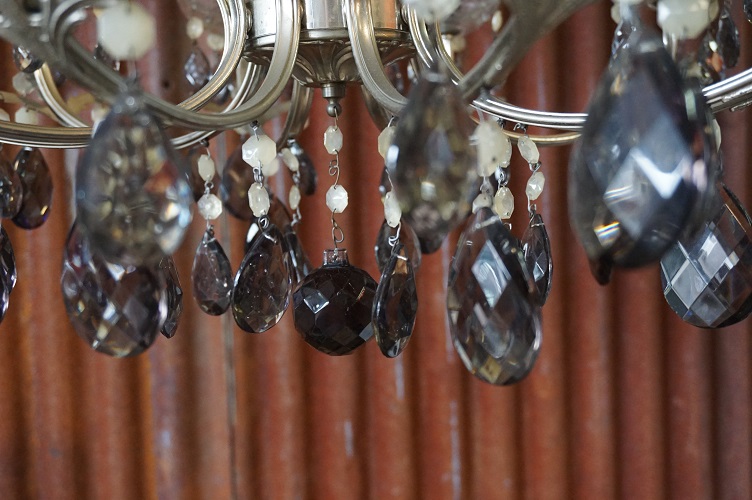 Metalen kroonluchter met gerookt glazen kristallen