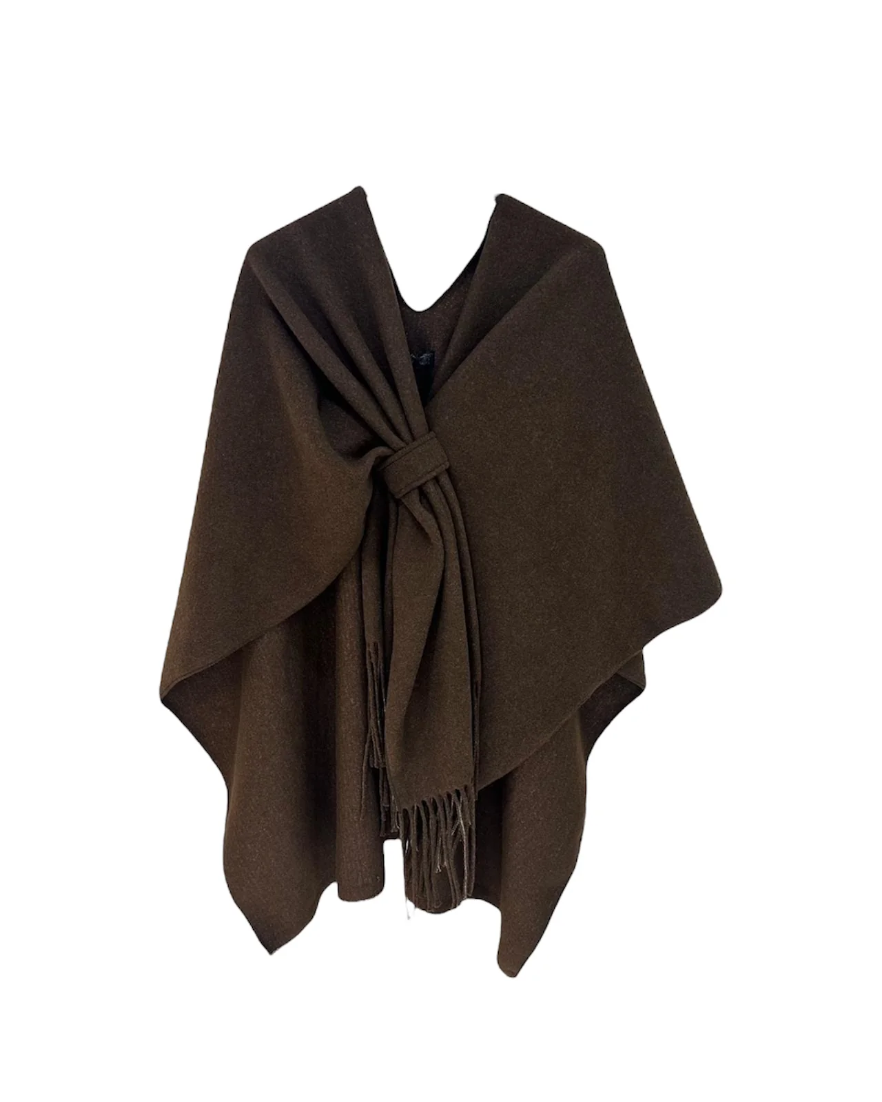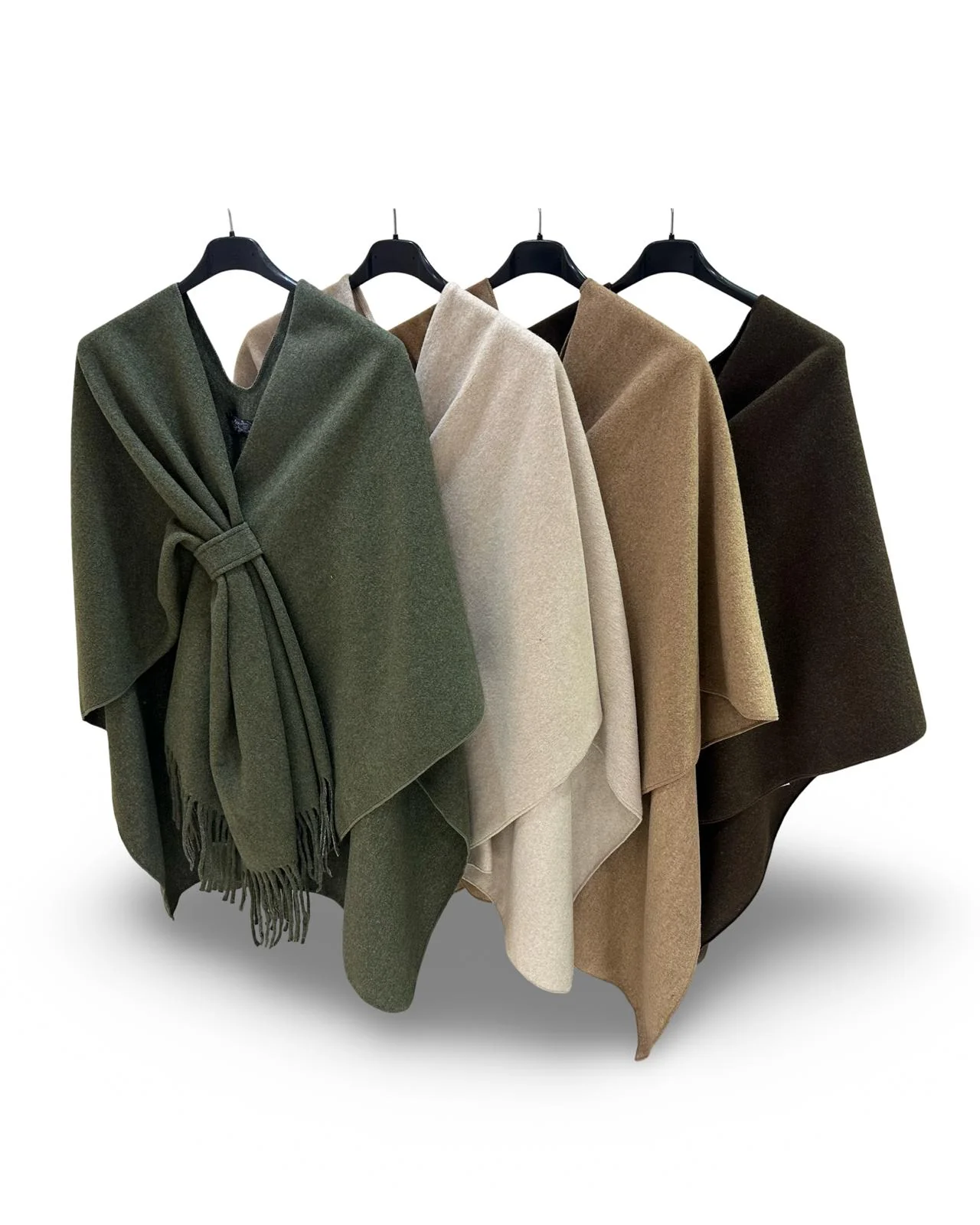 Deze poncho is verkrijgbaar in verschillende kleuren: Beige, Camel, Bruin, Groen