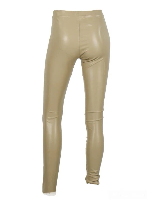 Camel kleurige Legging van Vegan Leather, PU. Een mooie kwaliteit leather look legging van Norfy met subtiele glans. Deze legging heeft een voering van dunne soepele fleece kwaliteit en heeft zeer veel stretch, is verkrijgbaar in verschillende kleuren: zwart, army green, camel en zwart met brede band.