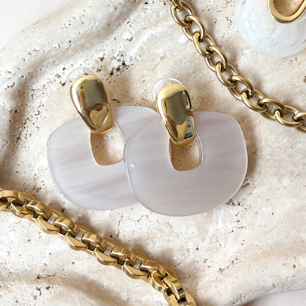 Laat je look stralen met de Florence oorbellen van DitzDatz – dé perfecte mix van elegantie en speelsheid. Deze hippe statement oorbellen zijn gemaakt van premium stainless steel en verkrijgbaar in drie trendy tinten: bruin, groen en ecru.