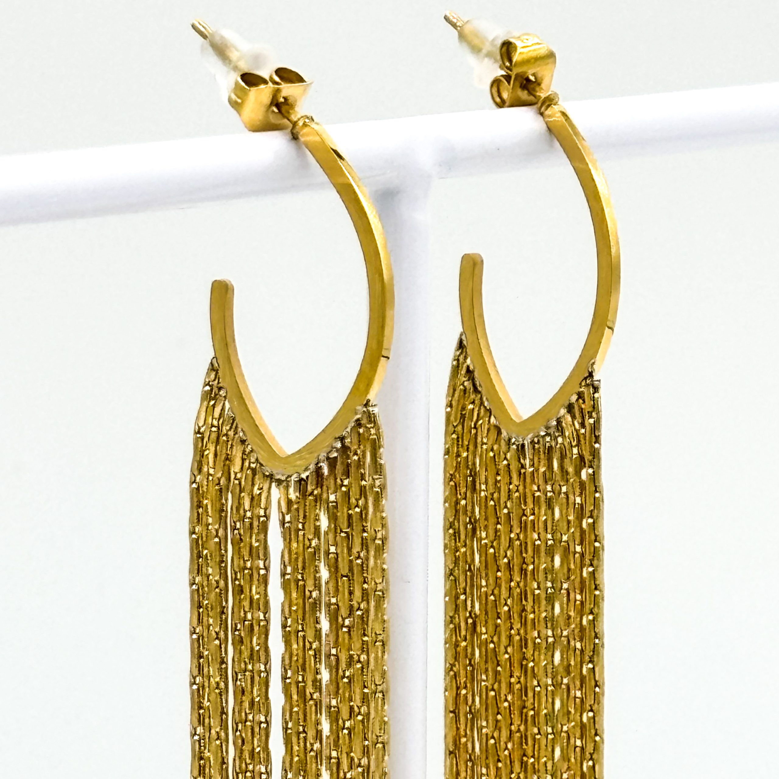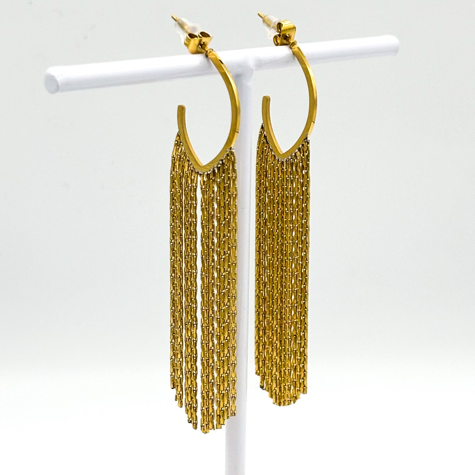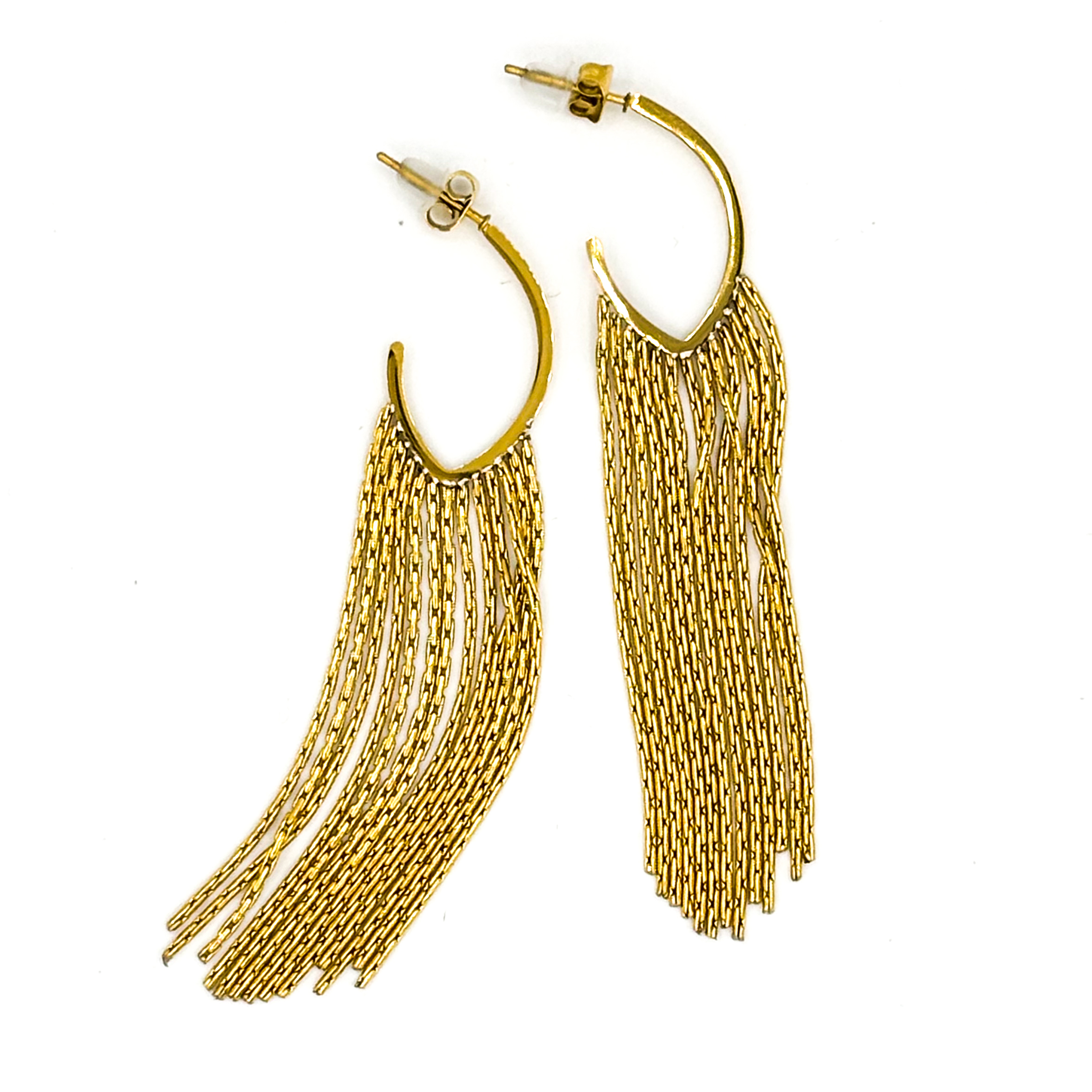 Hang oorbel halve creool met slierten van stainless steel – goudkleurig