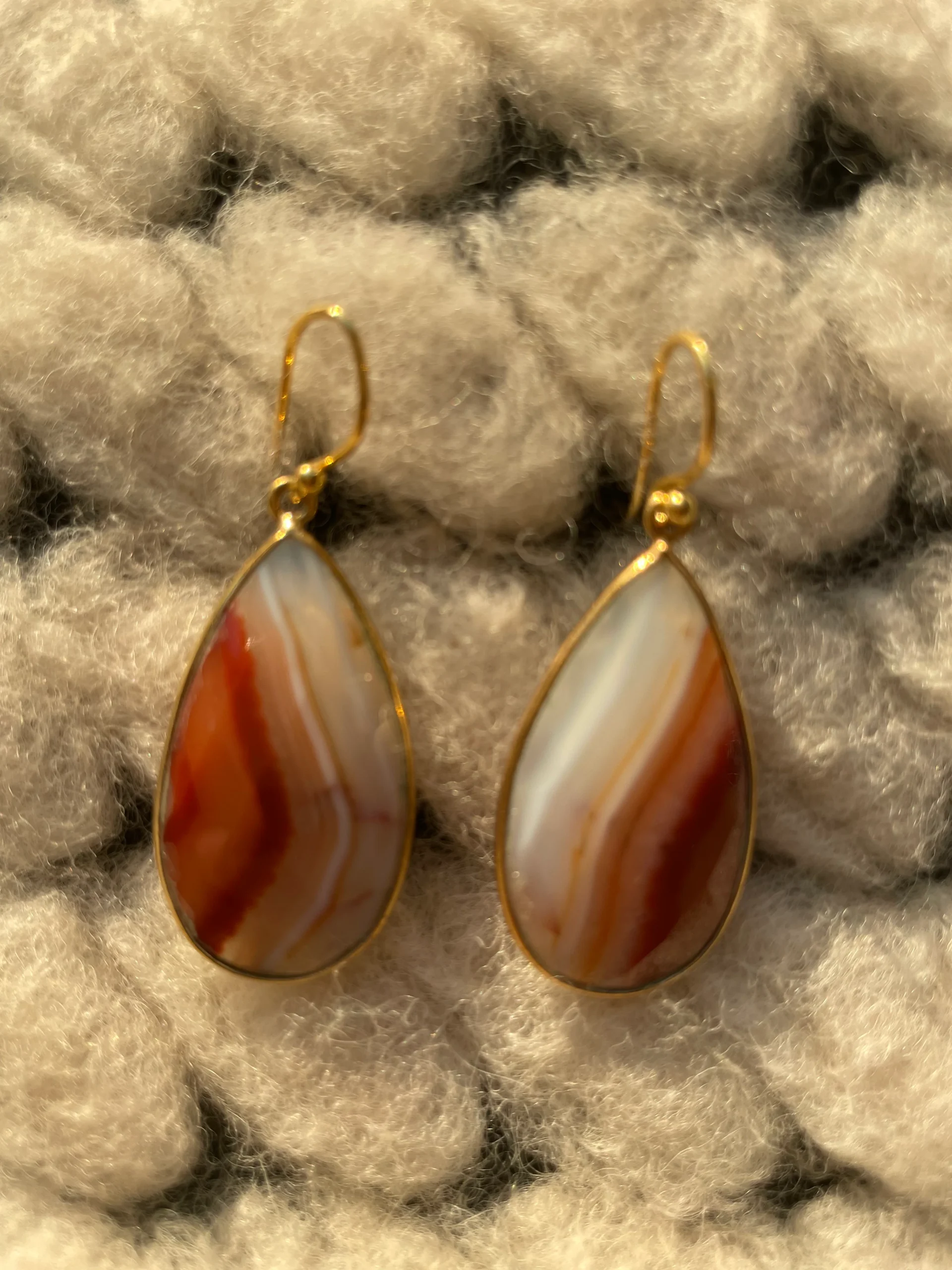 Mooie oorbellen, type oorhangers, met edelsteen Agaat. Edelsteen Agaat hoort bij de sterrenbeelden Schorpioen, Tweelingen en Vissen.