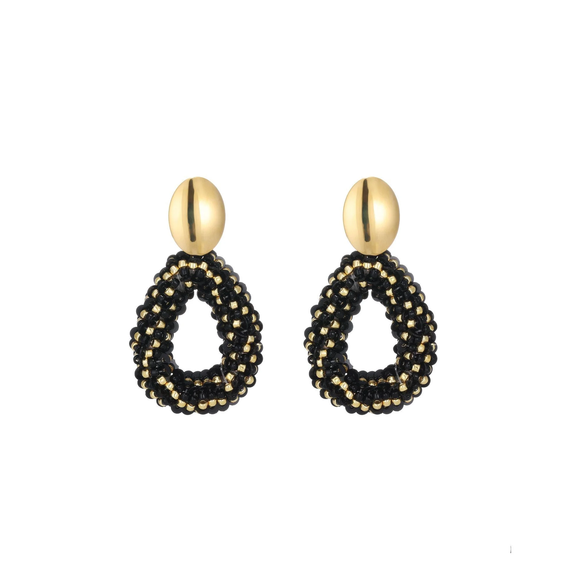 Voeg een vleugje luxe toe aan je look met deze elegante druppelvormige oorbellen. De combinatie van zwarte en goudkleurige siersteentjes zorgt voor een chique en tijdloze uitstraling.