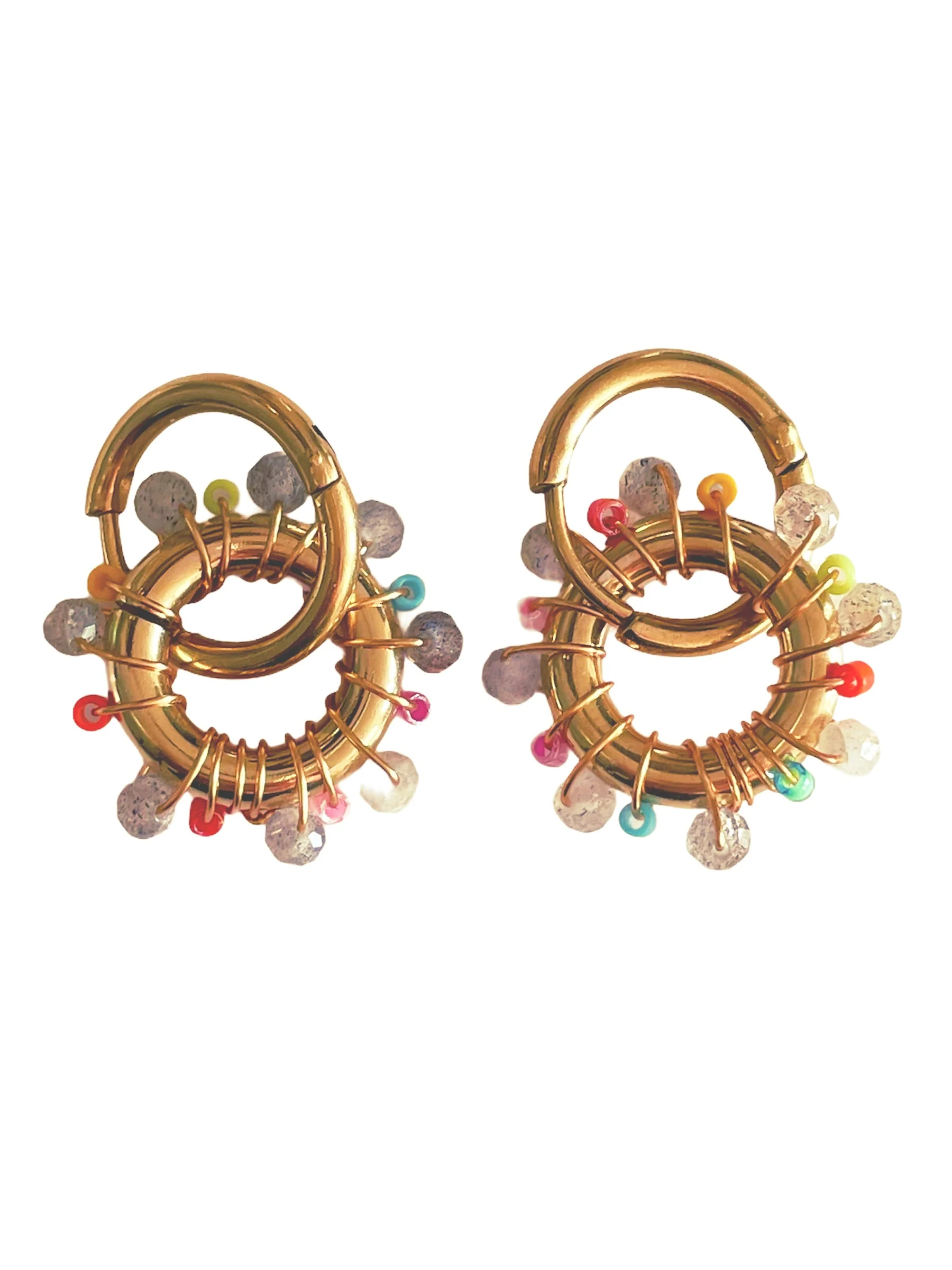 Wat een plaatje, deze oorringen hebben een hanger met grijze kraaltjes als basis en kleinere gekleurde kraaltjes. De oorbellen zijn subtiel en toch opvallend door de vormgeving. Deze oorbellen zijn verkrijgbaar in verschillende kleuren: witte parels, grijs en roze.