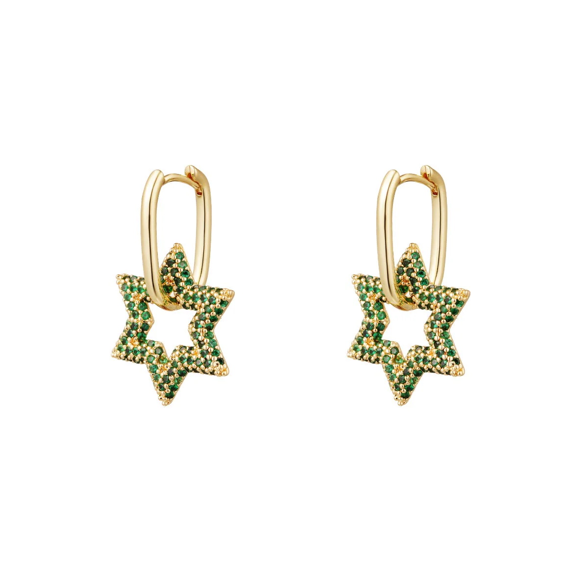 Oorbellen Shiny Star Zirkonia zijn verkrijgbaar in goud- en zilverkleurig, Goud/Fuchsia, Goud/Groen.