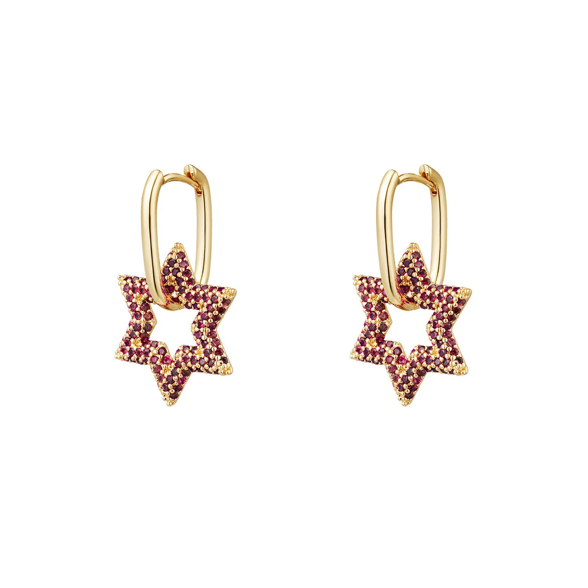 Oorbellen Shiny Star Zirkonia zijn verkrijgbaar in goud- en zilverkleurig, Goud/Fuchsia, Goud/Groen.