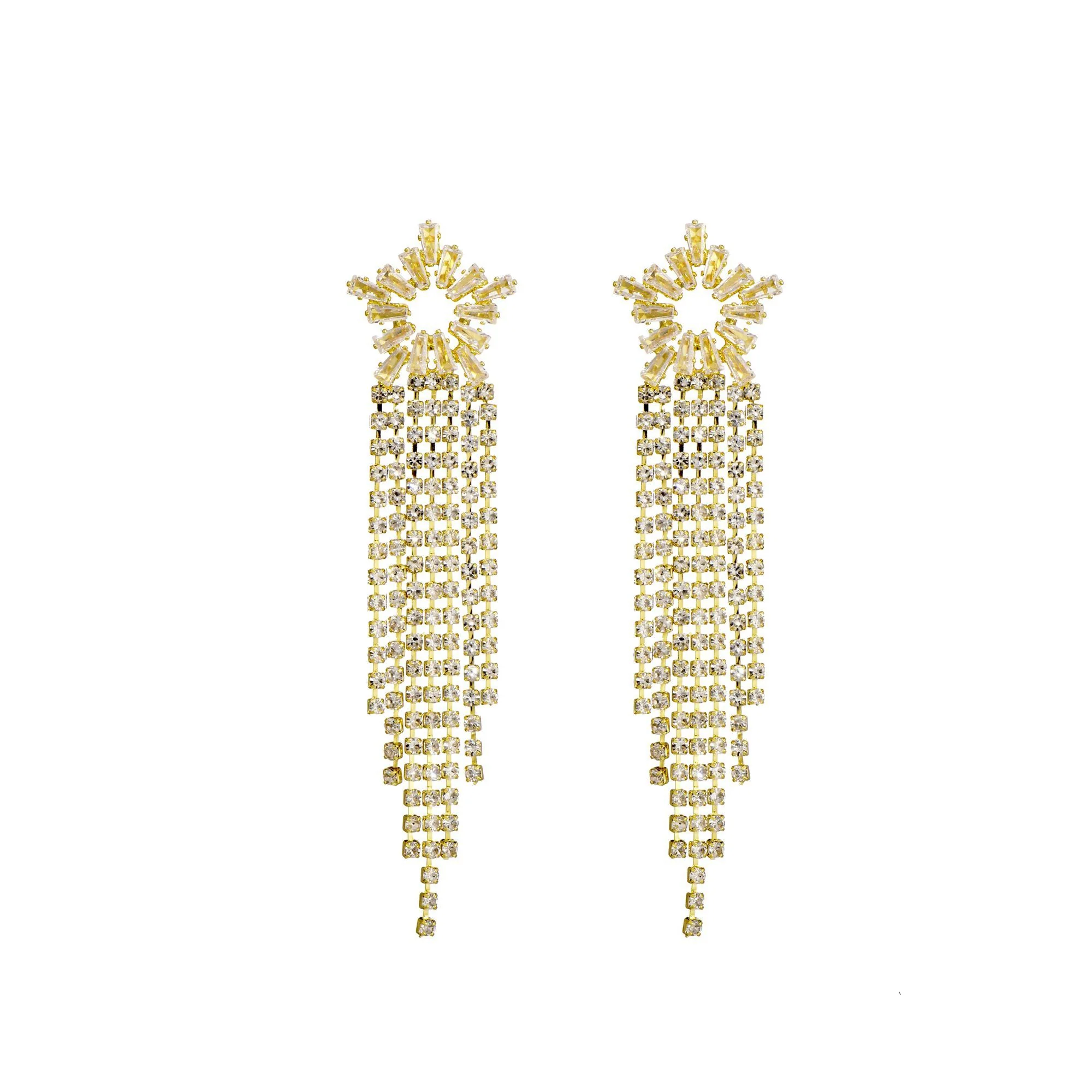 Voeg wat feestelijkheid toe aan je look met deze elegante oorbellen met lange slierten afgezet met siersteentjes. De combinatie van siersteentjes met goud zorgt voor een chique en feestelijke uitstraling.