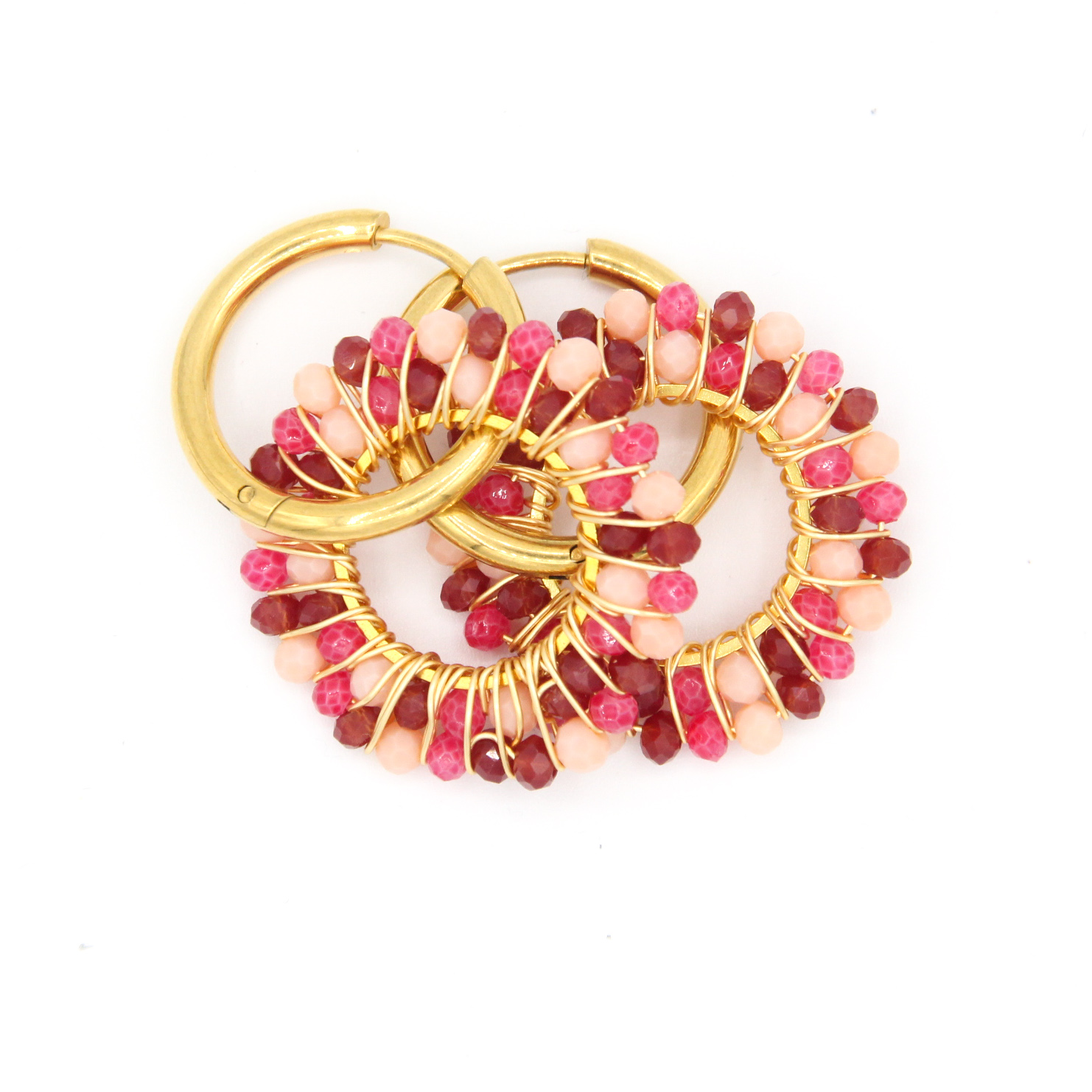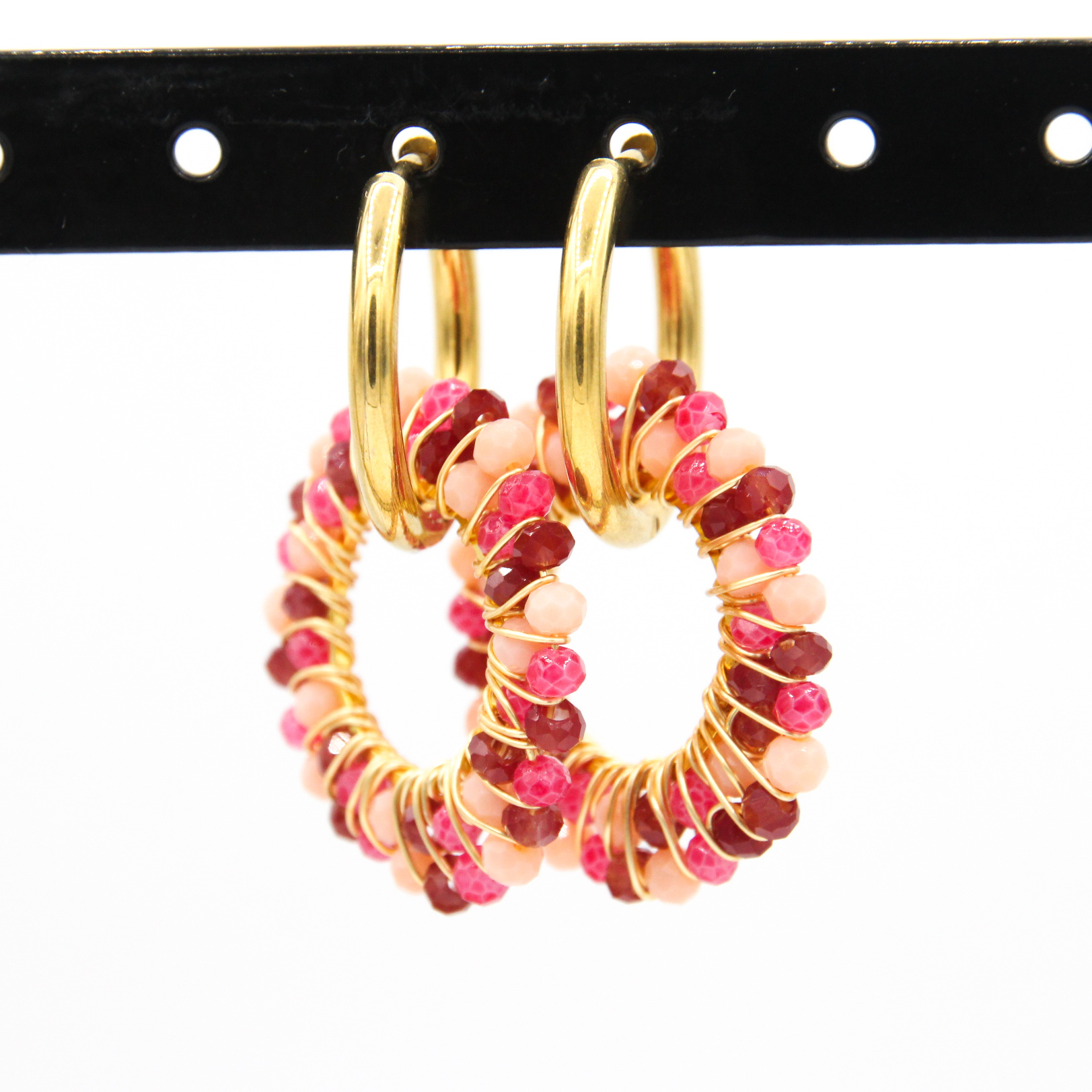 oorring met facet hanger – rood/roze/goud