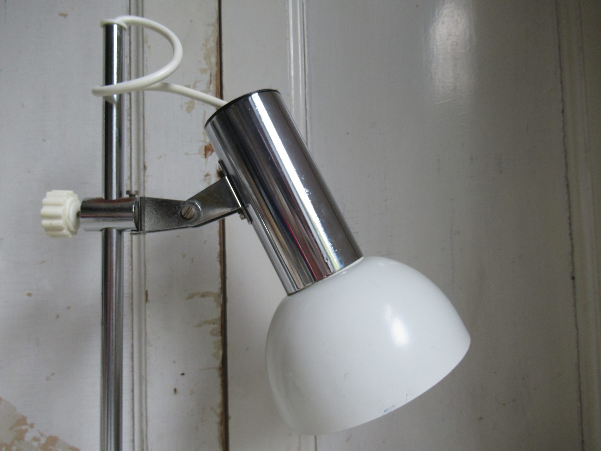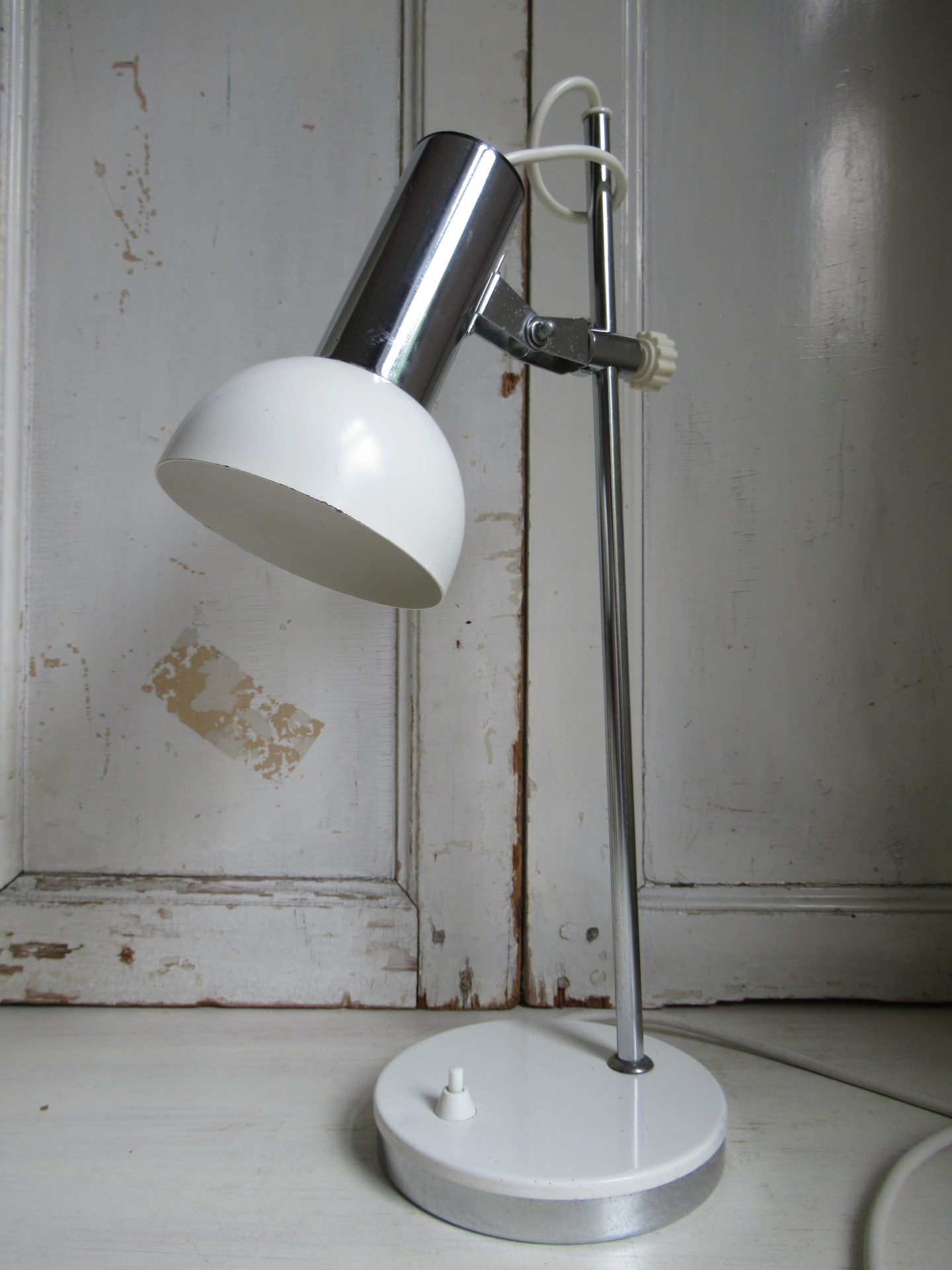 oud bureaulampje, in hoogte verstelbaar (hoogte stang 47 cm, doorsnede voet 15 cm)