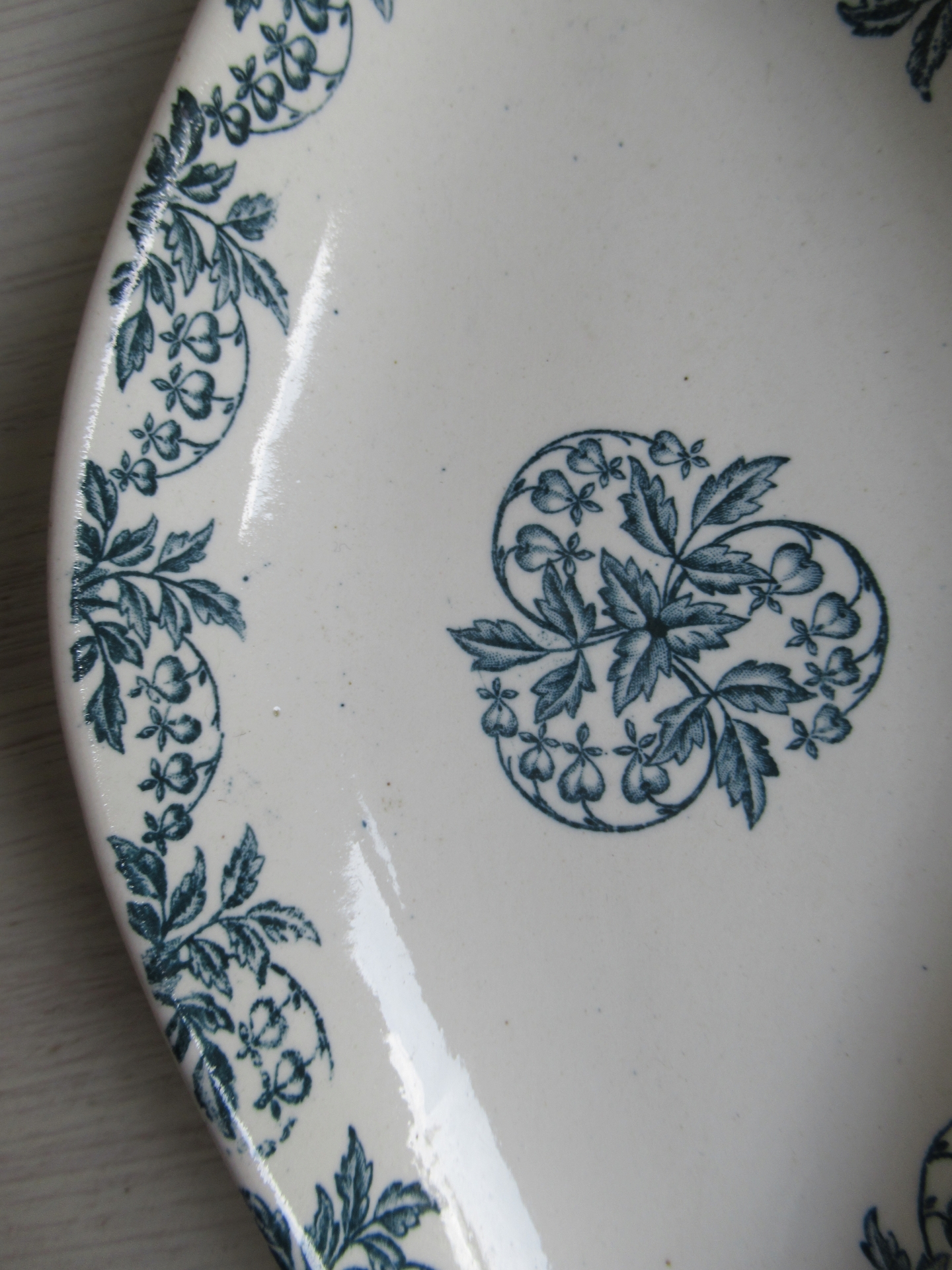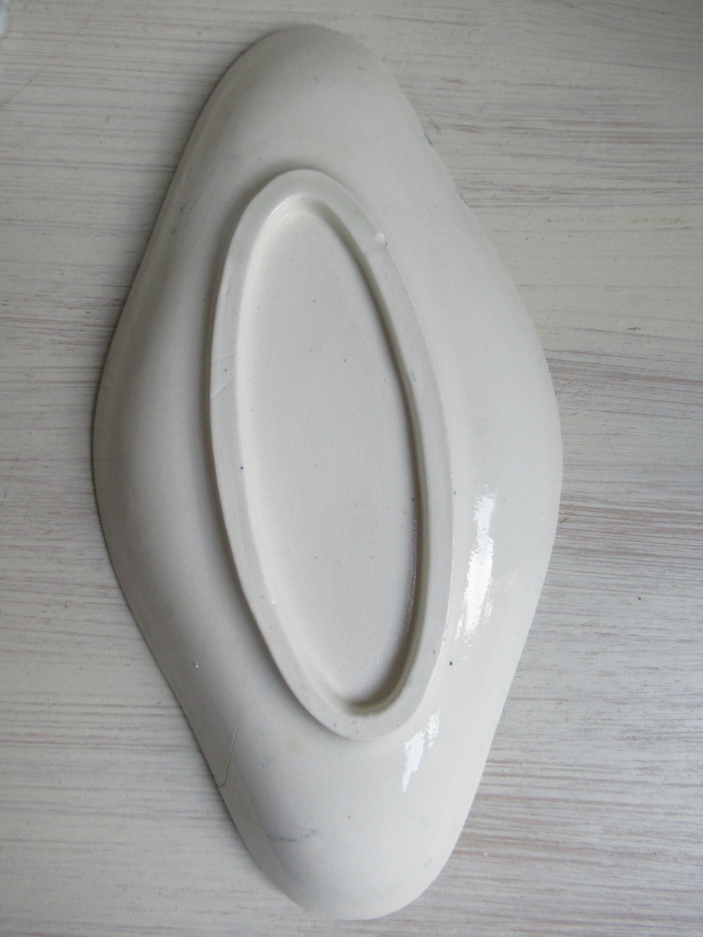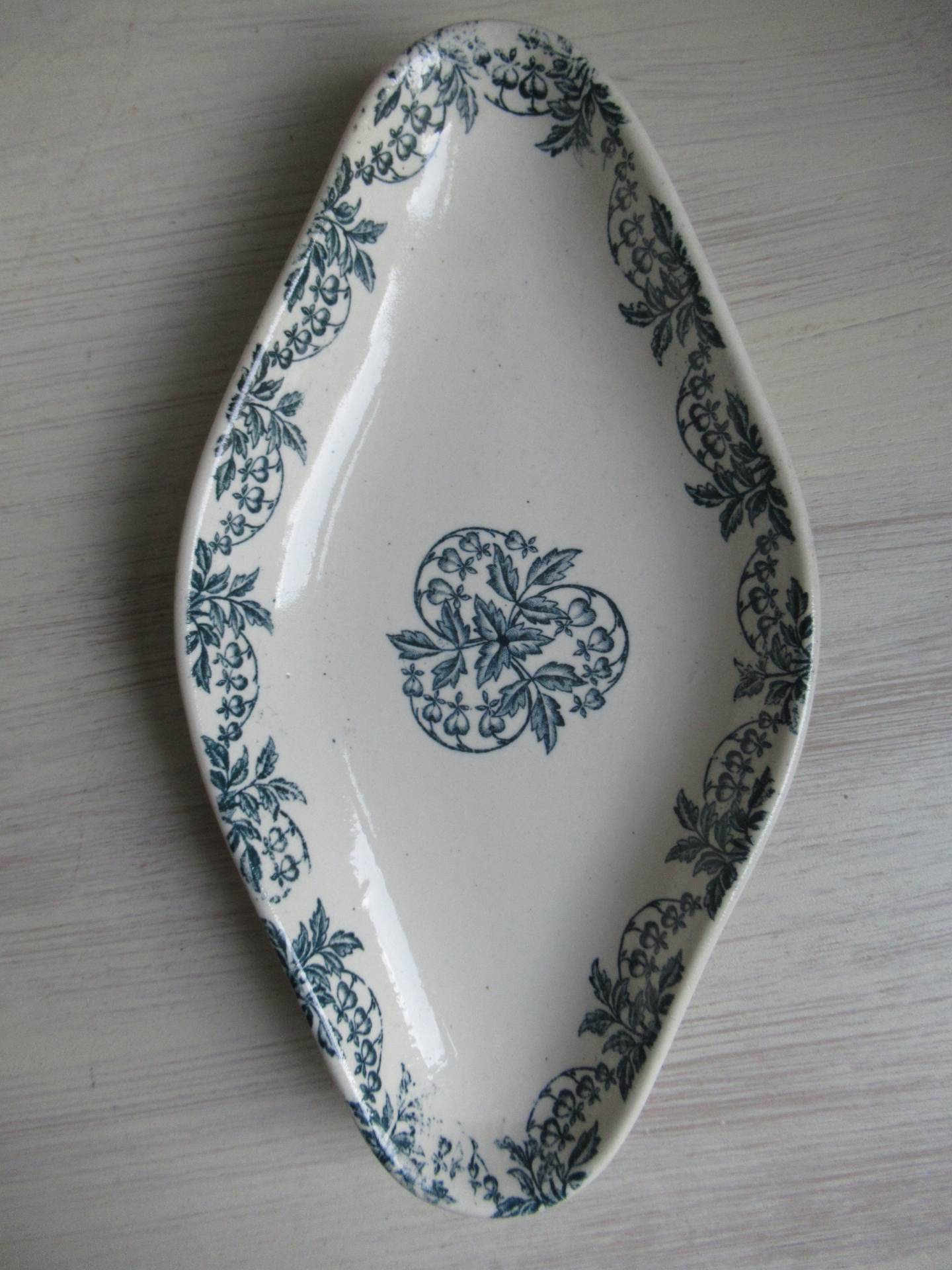 oud Frans (vlees-) schaaltje, heeft een ingebakken scheurtje, alleen aan de onderkant en niet storend (23 bij 12 cm)