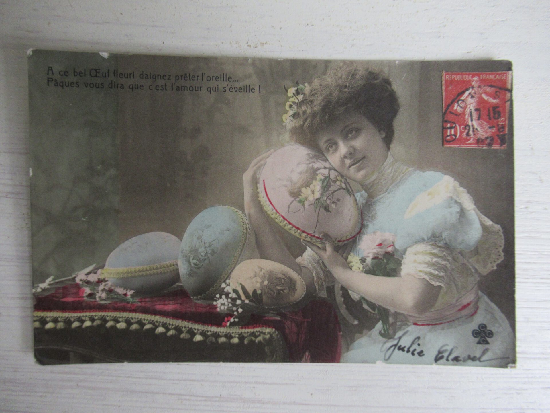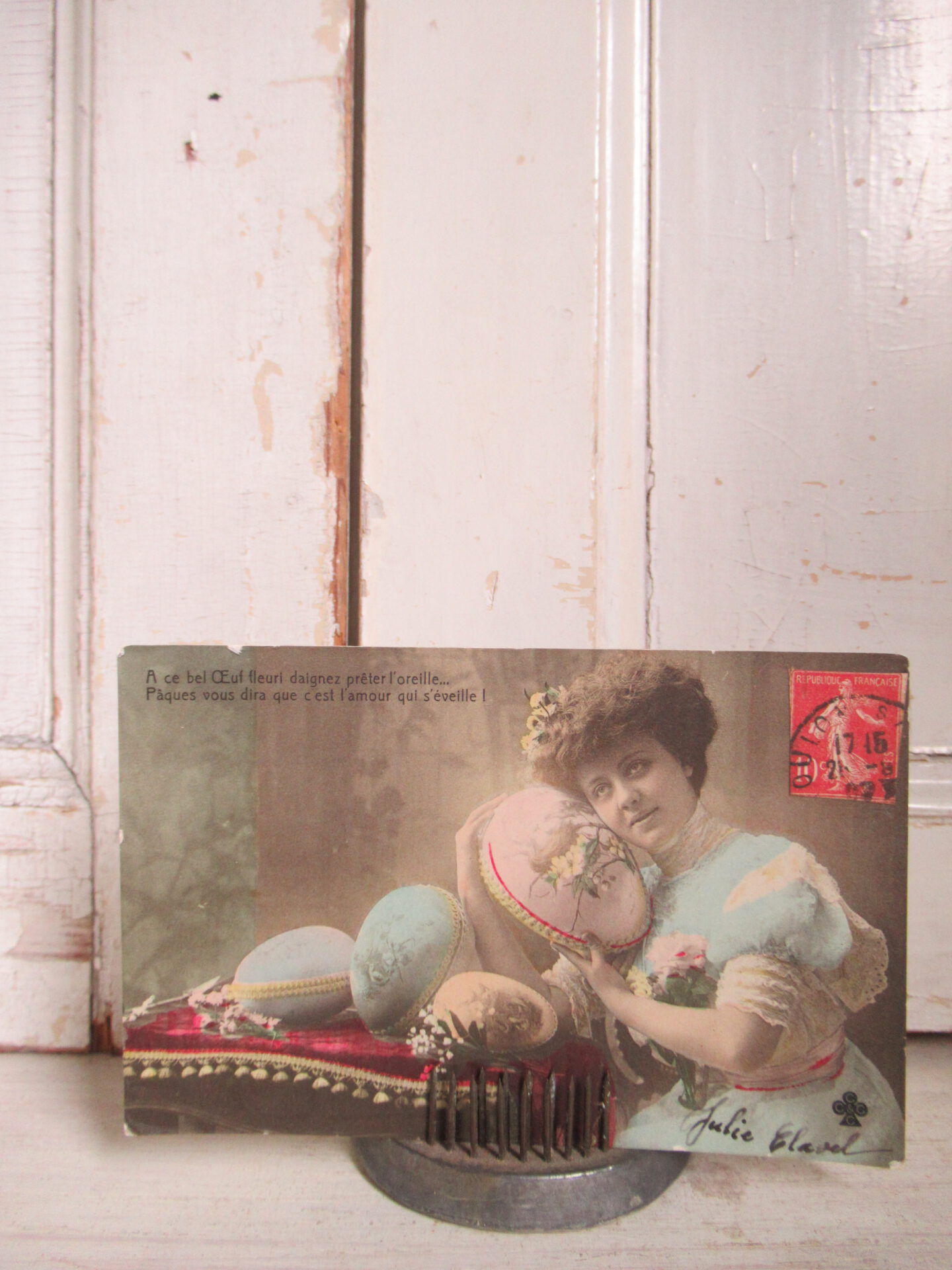 oude beschreven Franse paaskaart, 16 april 1908 (14 bij 9 cm)