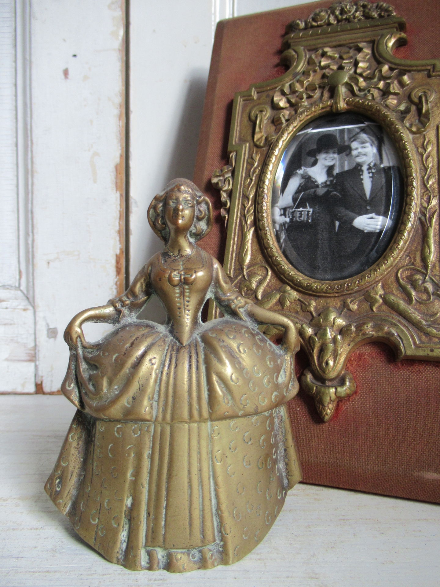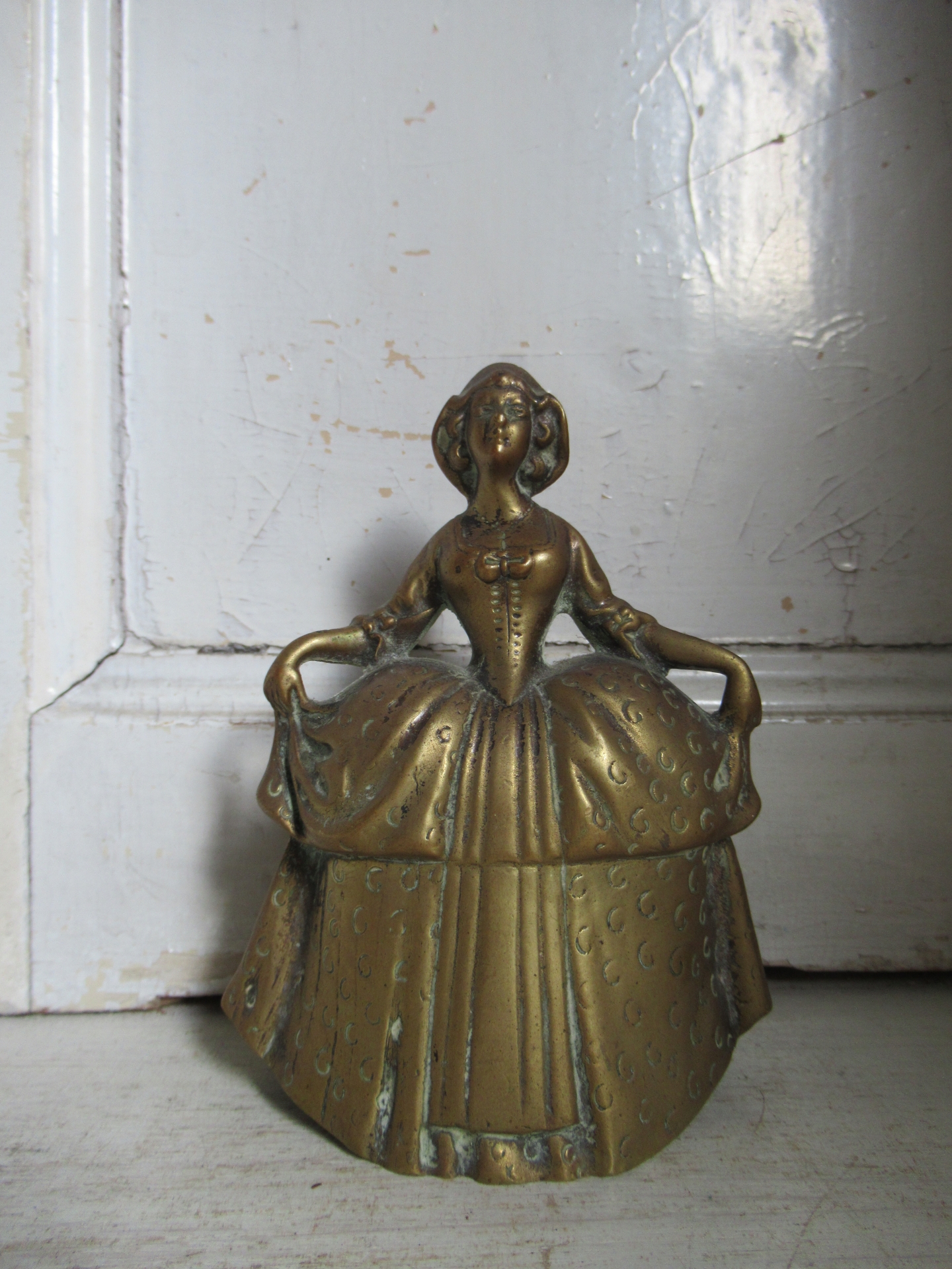 oude Engelse tafelbel, deze zag ik niet eerder, kijk hoe ze haar jurk vasthoudt (hoogte 12,5 cm)