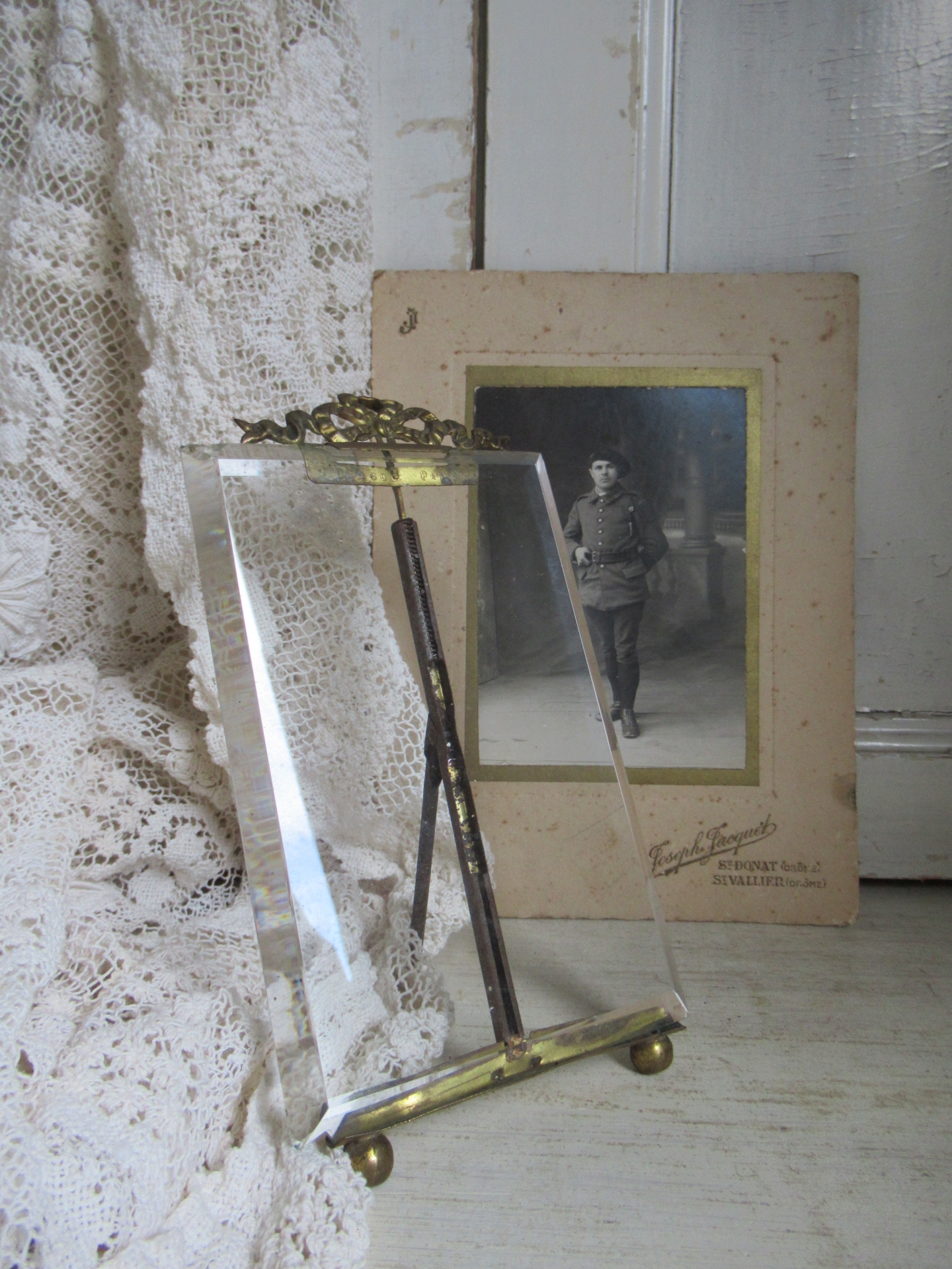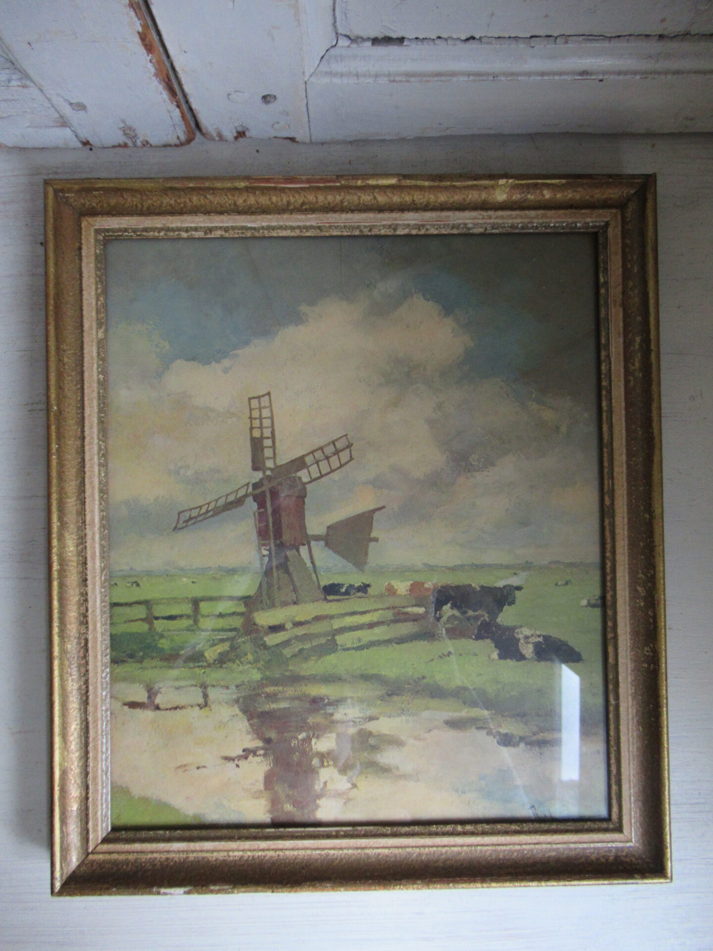 oude lijst met afbeelding achter glas
