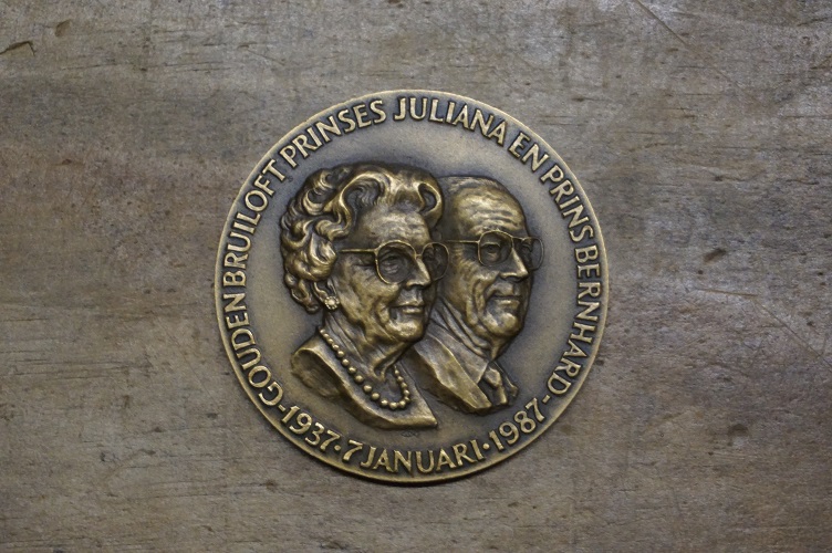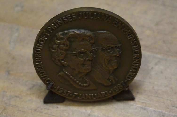 Bronzen penning van de 50 jarige bruiloft Koningin Juliana en Prins Bernard 7 januari 1937 – 1987
