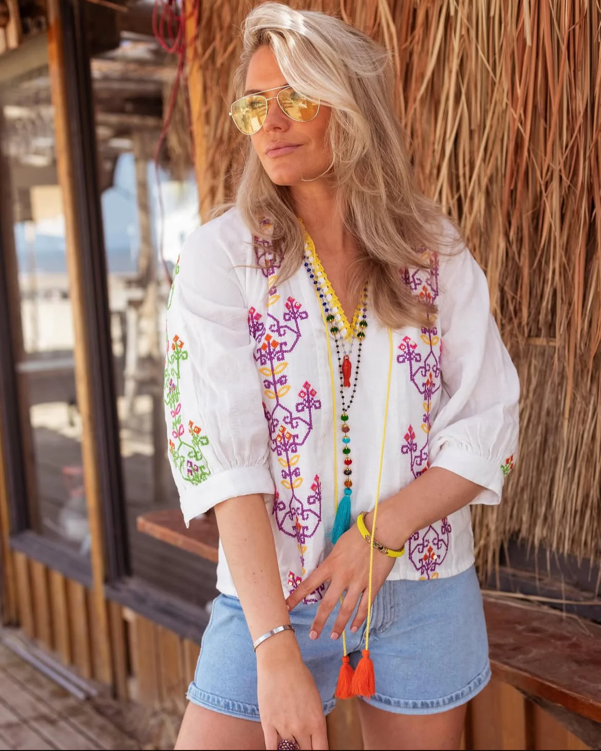 Deze blouse heeft borduursels als prachtig detail, echt een ware eye catcher!