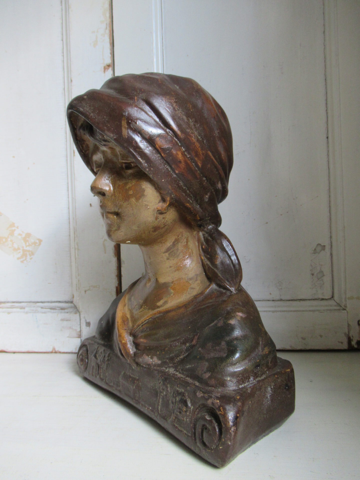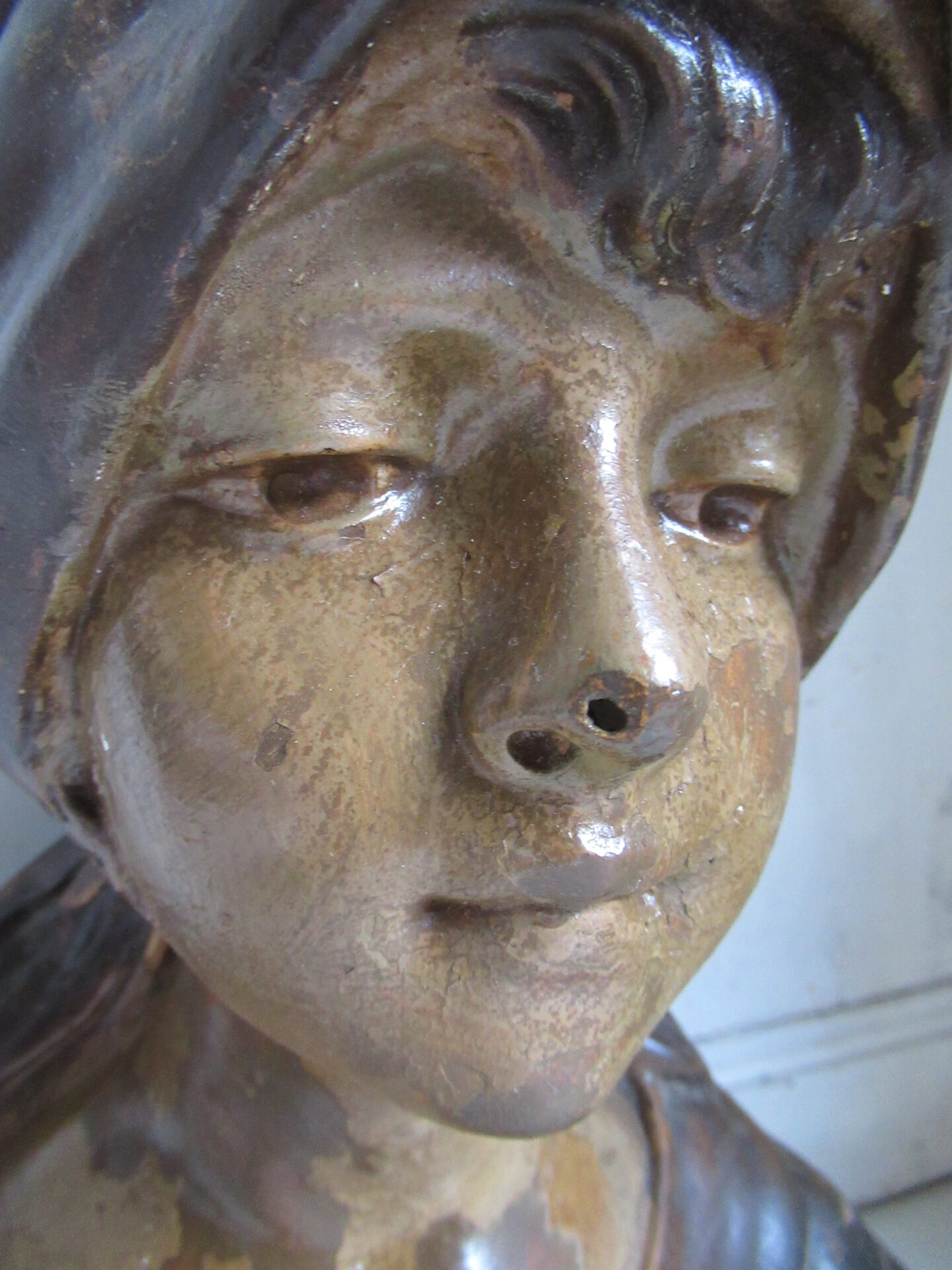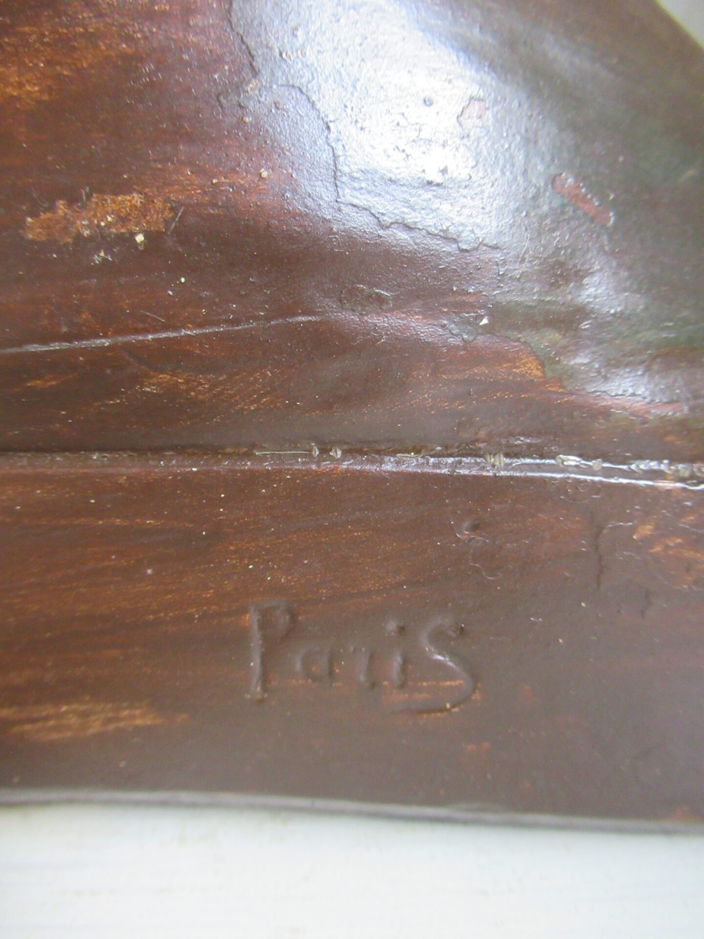 prachtig oud Frans beeld, heeft een bakfoutje aan de neus, een heel klein gaatje, niet storend, gesigneerd, Paris (26 cm breed, 16 cm diep en 33 cm hoog)