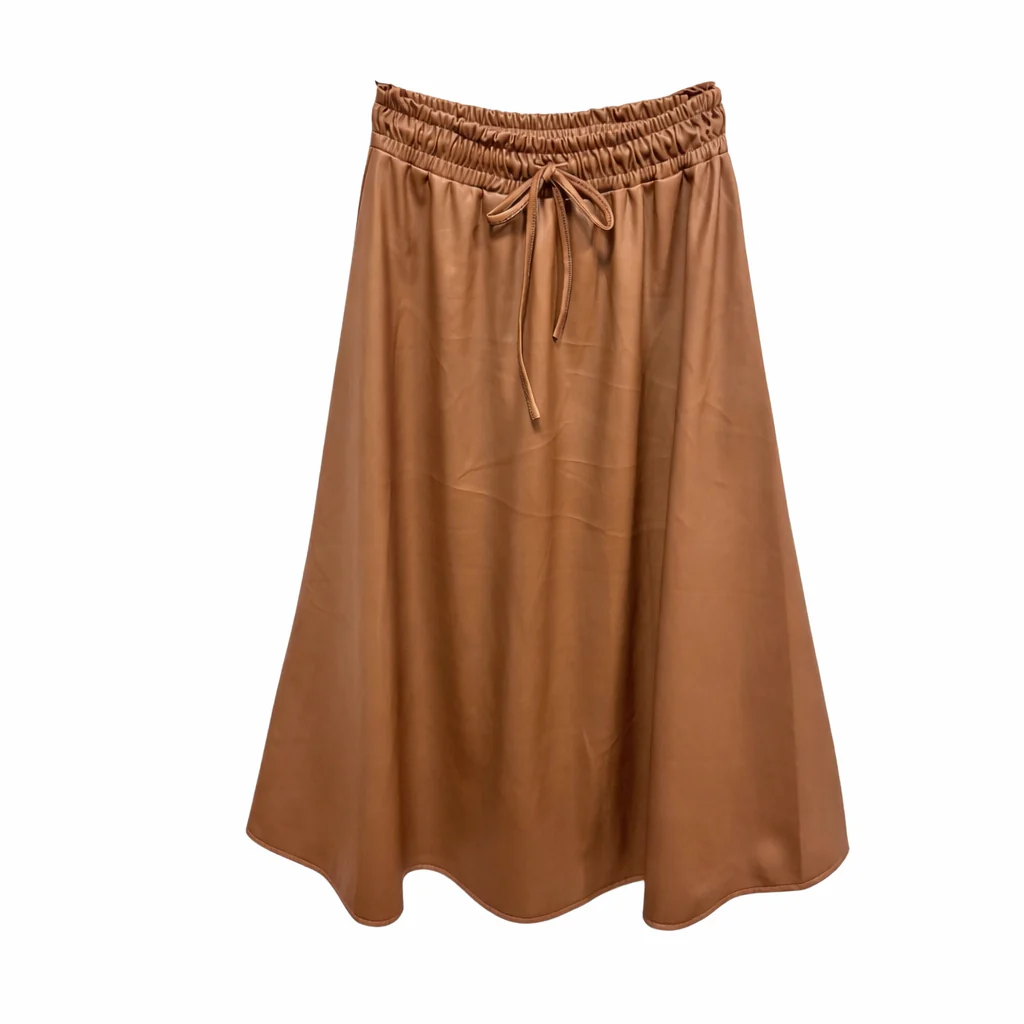 De soepele imitatieleer-look PU, geeft een moderne, chique uitstraling, terwijl de elastische taille met strik zorgt voor ultiem draagcomfort. De rok heeft een elegante pasvorm die perfect combineert met zowel laarzen, hakken als sneakers.