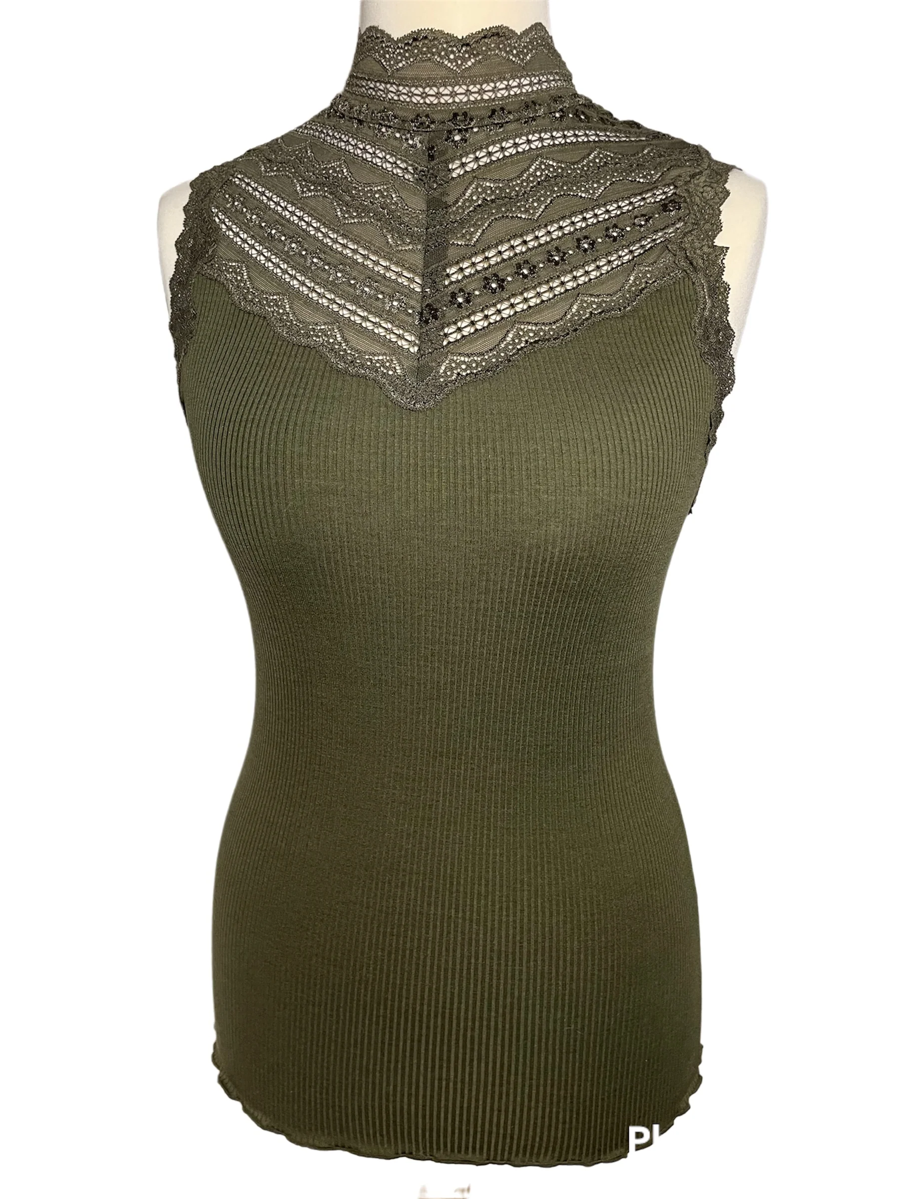 Top Benita Silk & Lace is prachtig bewerkt en is verkrijgbaar in verschillende kleuren: Olive Night (Oijfgroen), Black (zwart).
