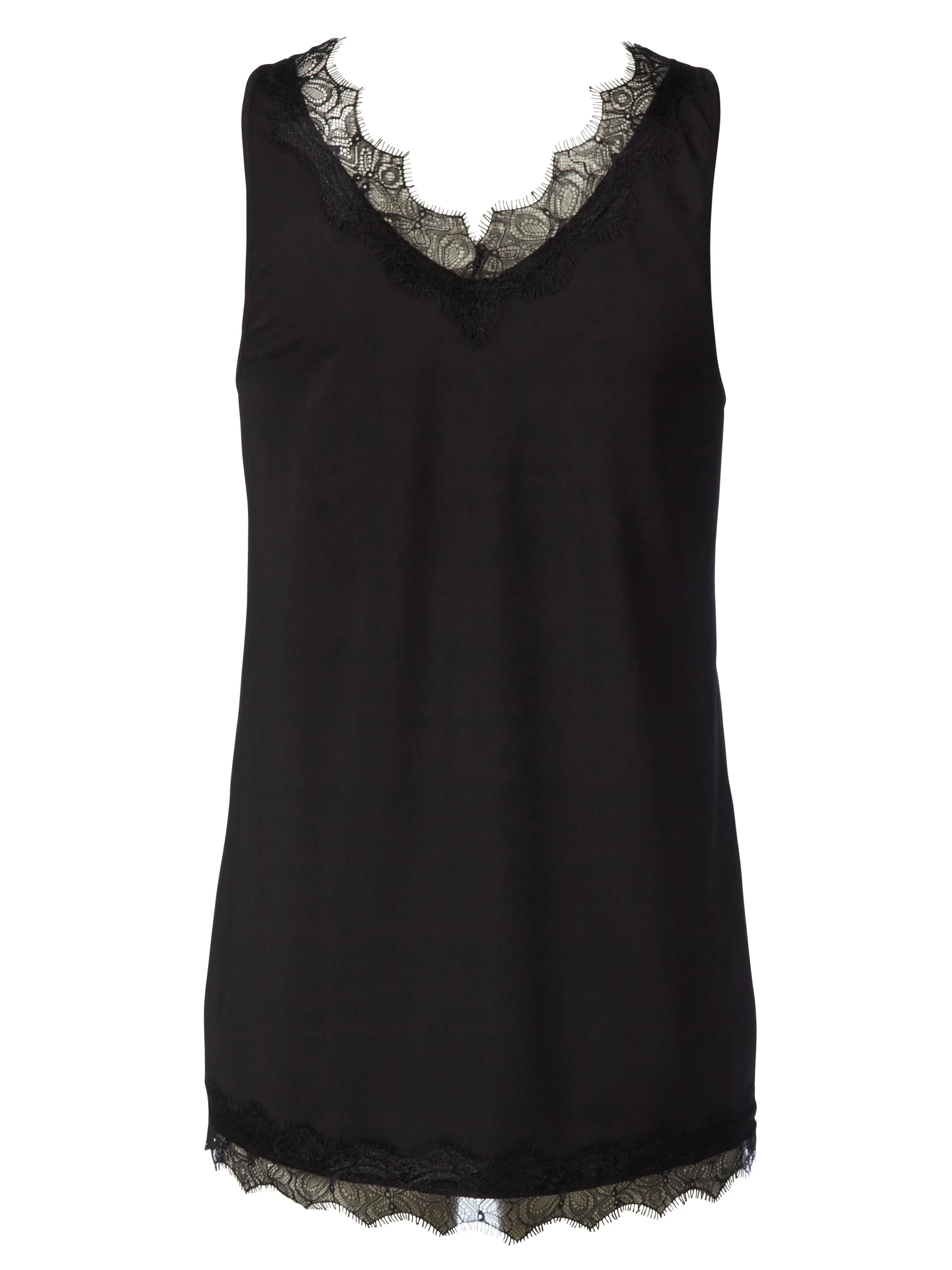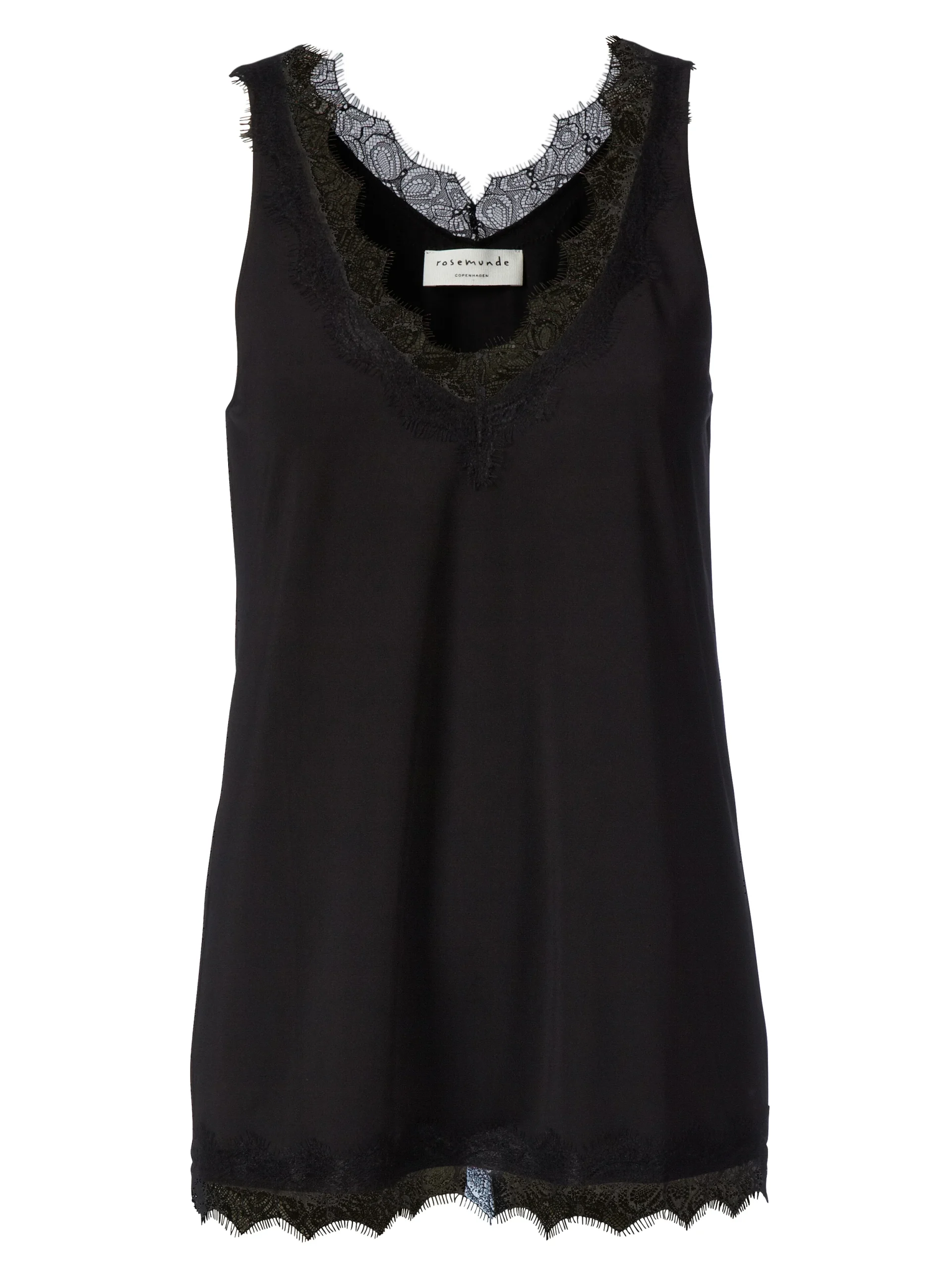Billie Top Lace van Rosemunde is een top met bredere schouderbanden en heeft een ronde hals, bewerkt met prachtig kant. De top is als een mooie basis te dragen en te combineren met een Rosemunde Pullover of te combineren met een colbert.