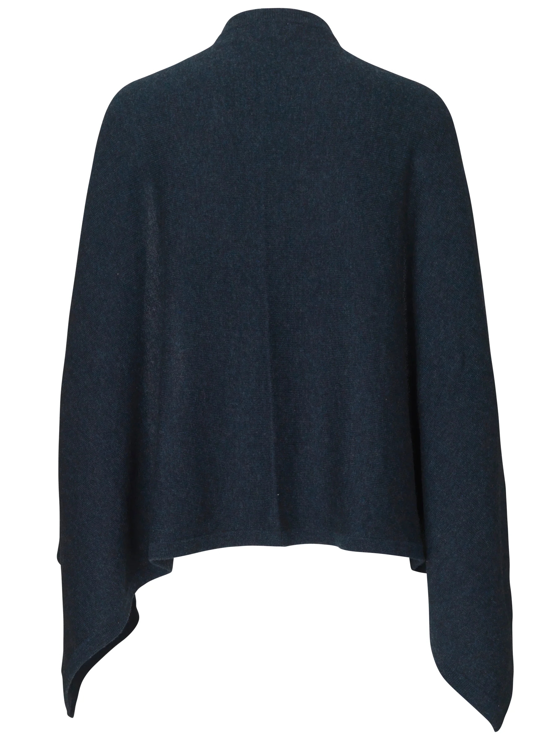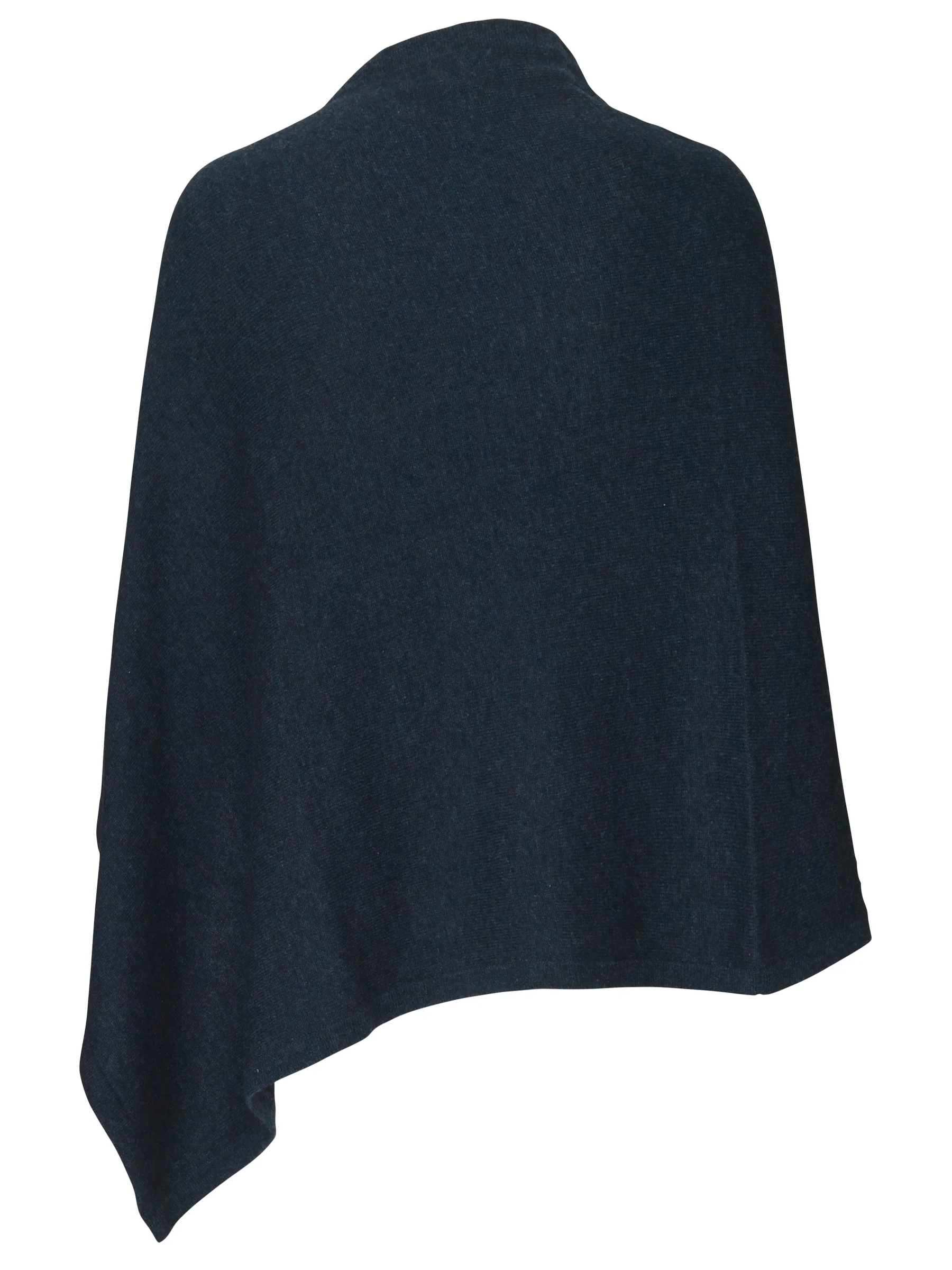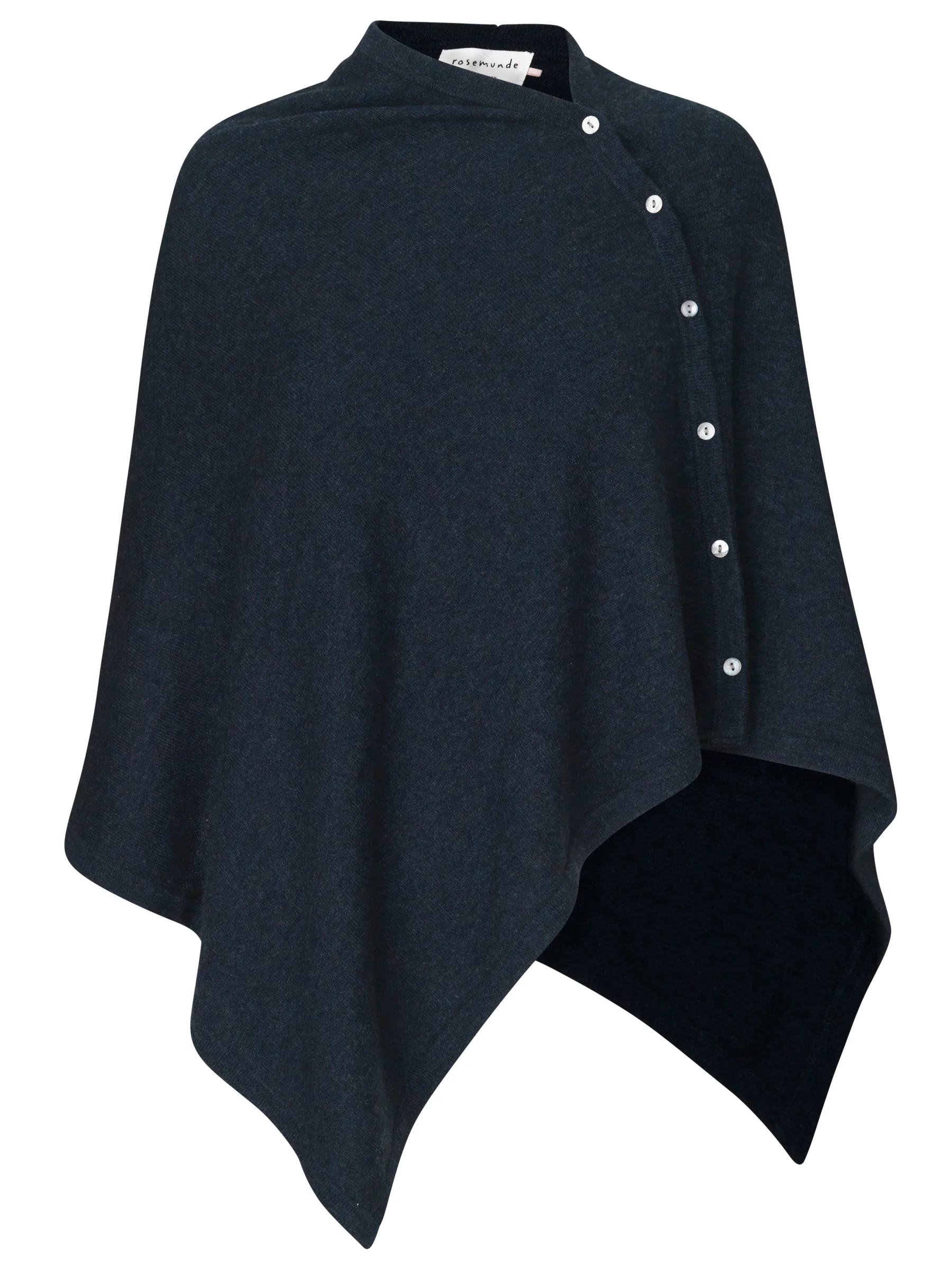 Zachte Poncho Cashmere van Rosemunde heeft kleine knoopjes en een subtiele kraag. De poncho is op verschillende manieren te dragen, knoopjes aan de voorkant, maar de knoopjes kun je ook over een schouder laten vallen. Of draag het item als een sjaal.