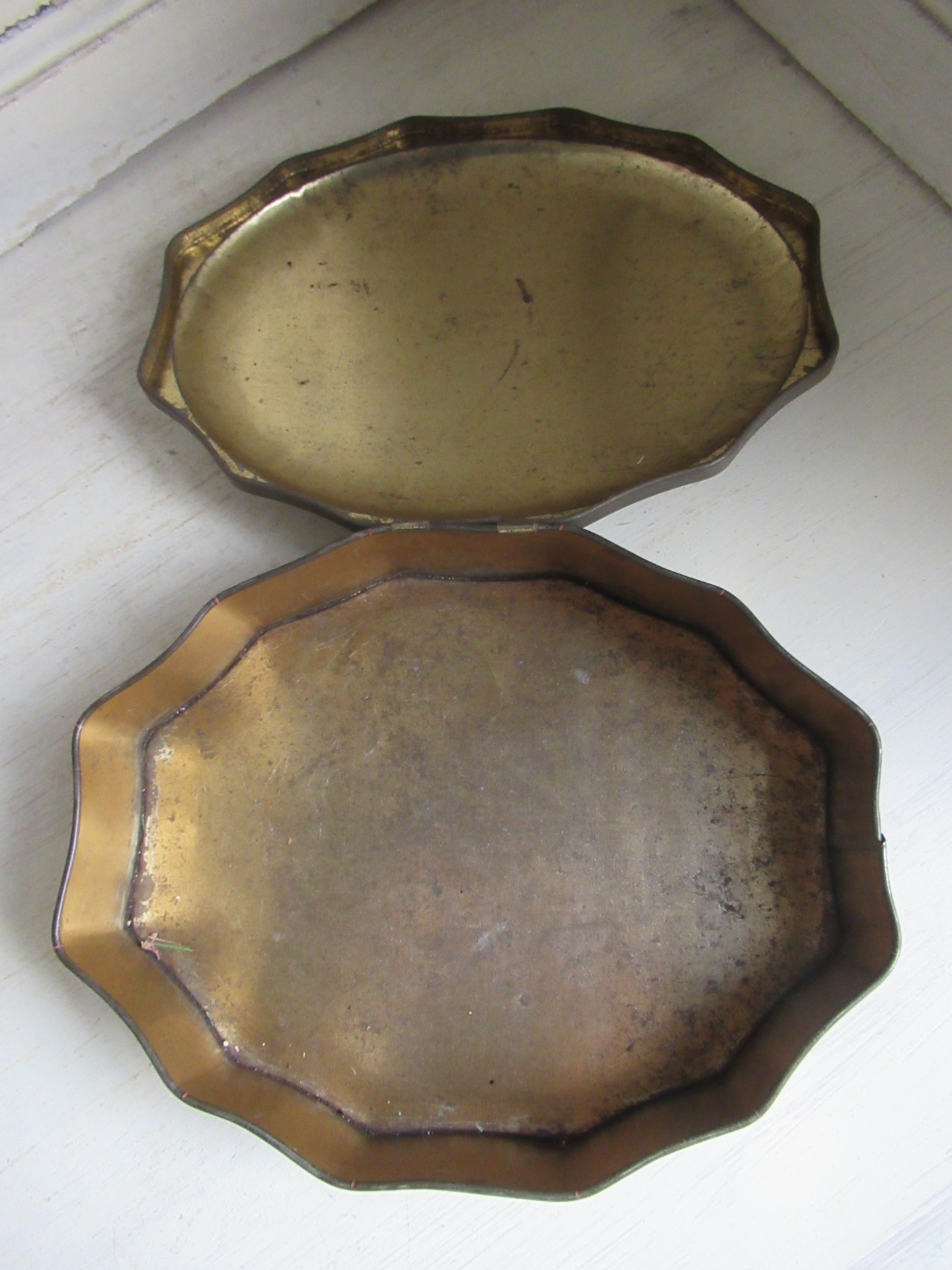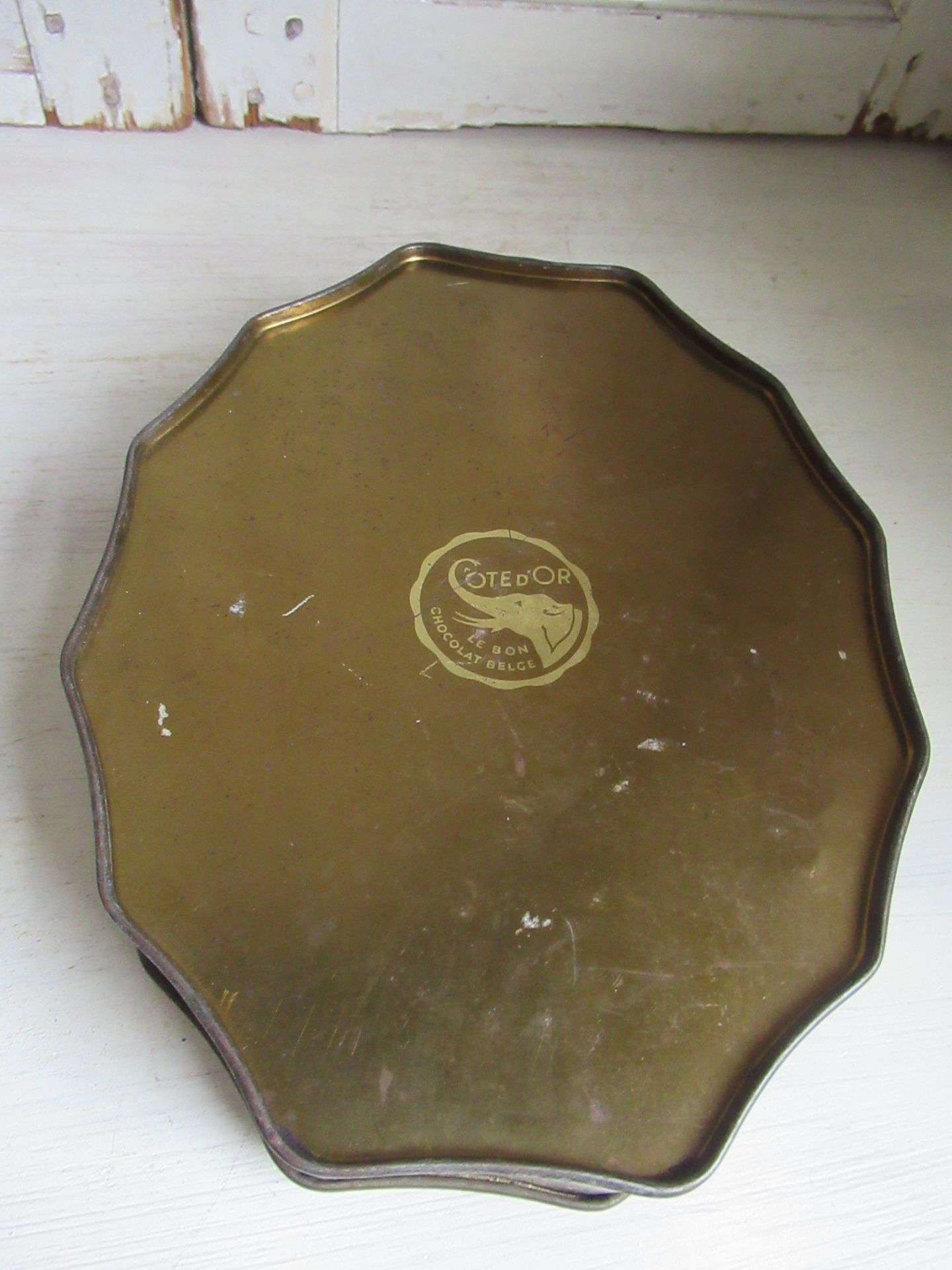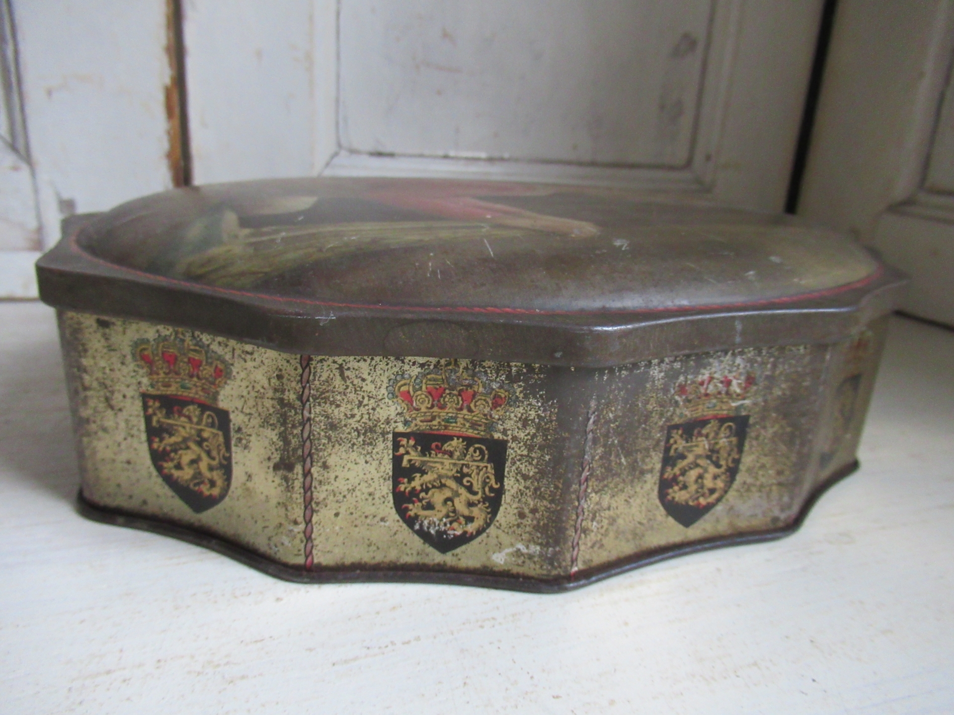 schattig oud blik met portret van een meisje op een stoel, Côte d’Or België (25 bij 20 cm, hoogte 6 cm)