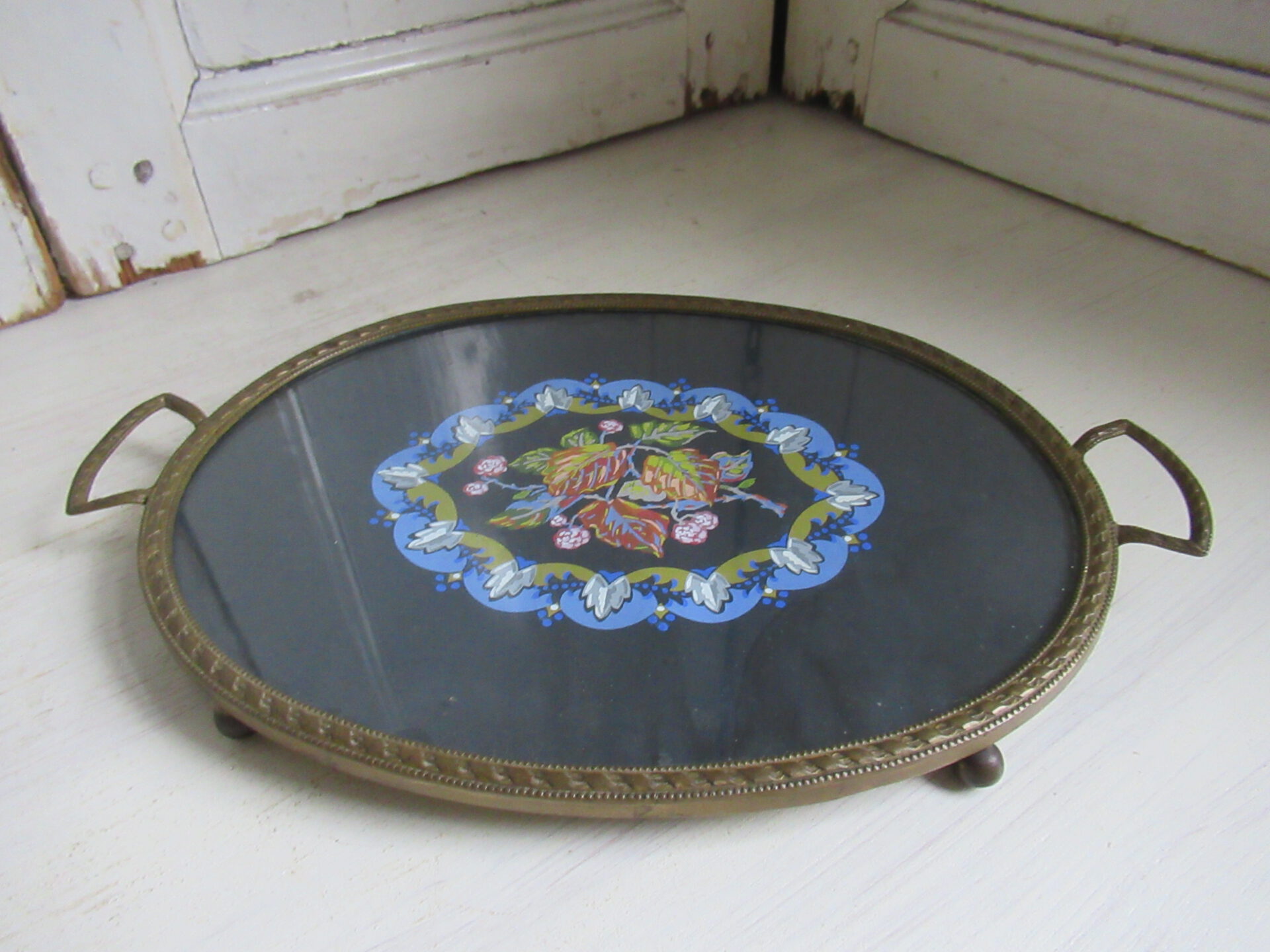 schattig oud dienblaadje, op pootjes met glasplaatje, afbeelding bobbelt een heel klein beetje, maar niets ernstigs (31 bij 20 cm)