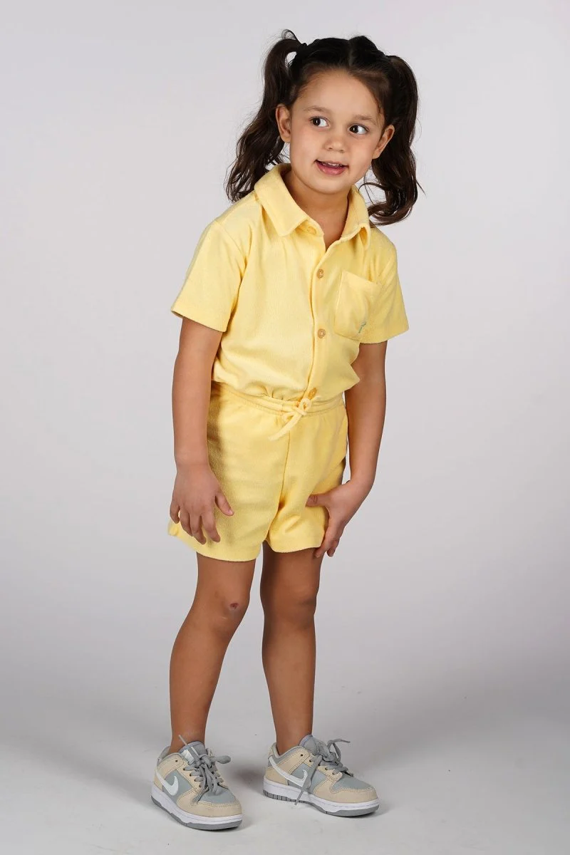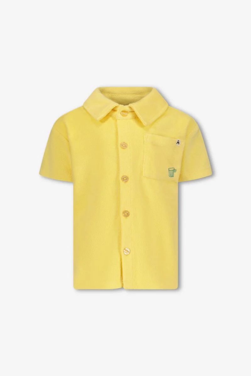 Dit leuke shirt Storm voor kinderen is gemaakt van zachte badstof in een gele frisse kleur. Het heeft een klassieke kraag en een knoopsluiting aan de voorkant voor een tijdloze uitstraling. Het borstzakje is voorzien van een subtiele borduur dat het shirt een uniek accent geeft. Perfect voor een casual en comfortabele look, waarbij het badstofmateriaal zorgt voor een heerlijk zacht gevoel – ideaal voor warme dagen! Duurzaam gemaakt. Dit chapter is in samenwerking met @kikirigters.