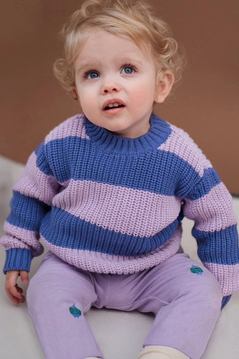 De paarse sweatbroek Suki is heerlijk zacht en comfortabel, en dankzij de leuke borduursels is de broek geweldig te combineren met het gebreide vestje Marley. Gemaakt van duurzaam katoen.