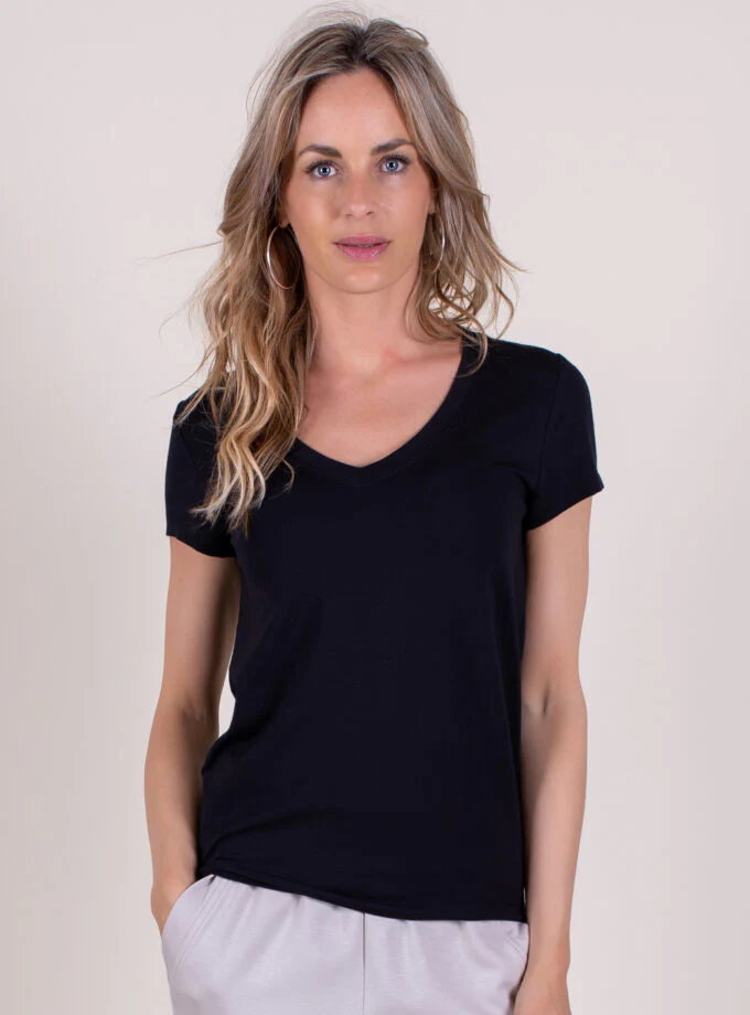 T-shirt Berlin V-hals Katoen Zwart