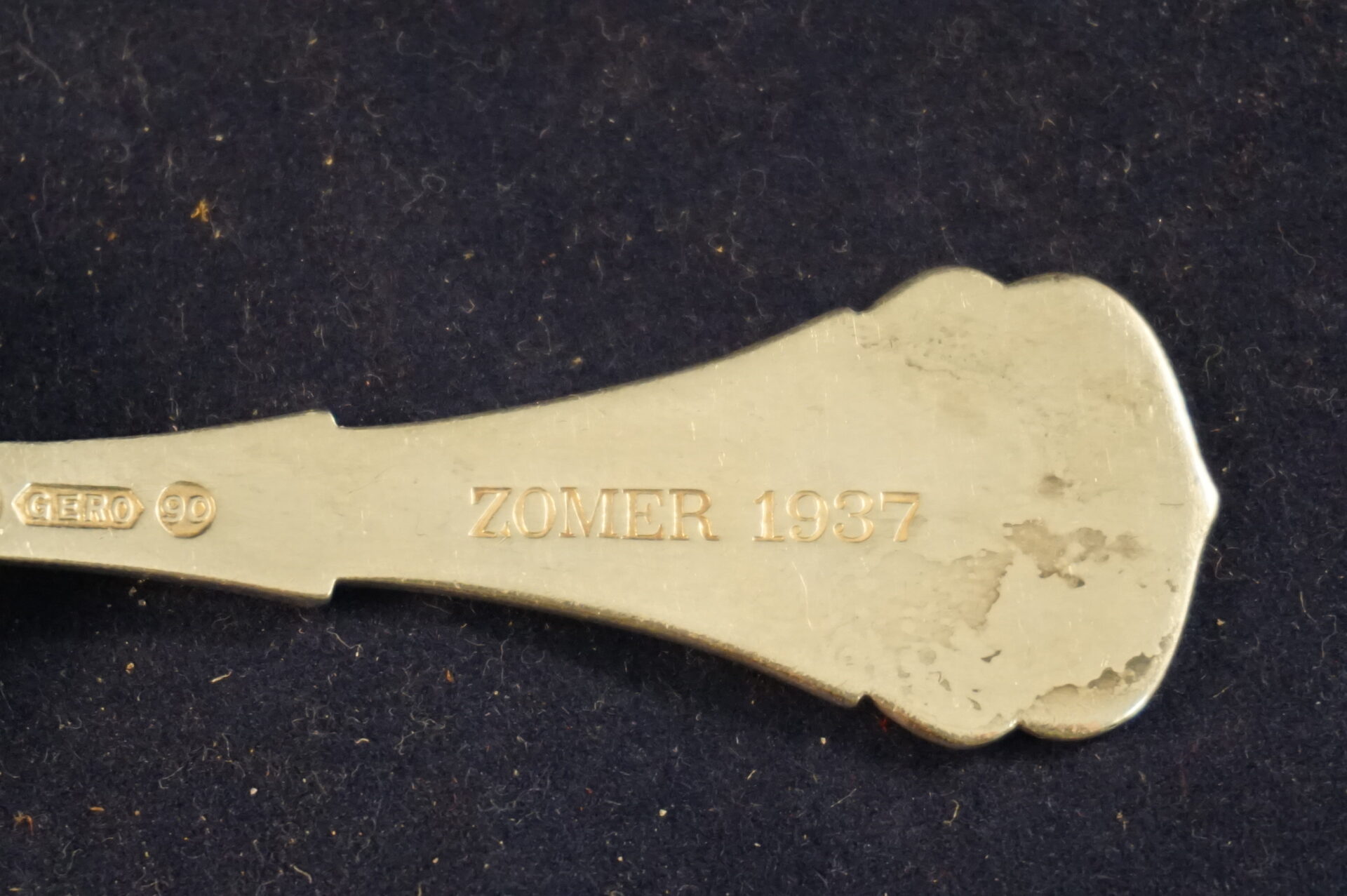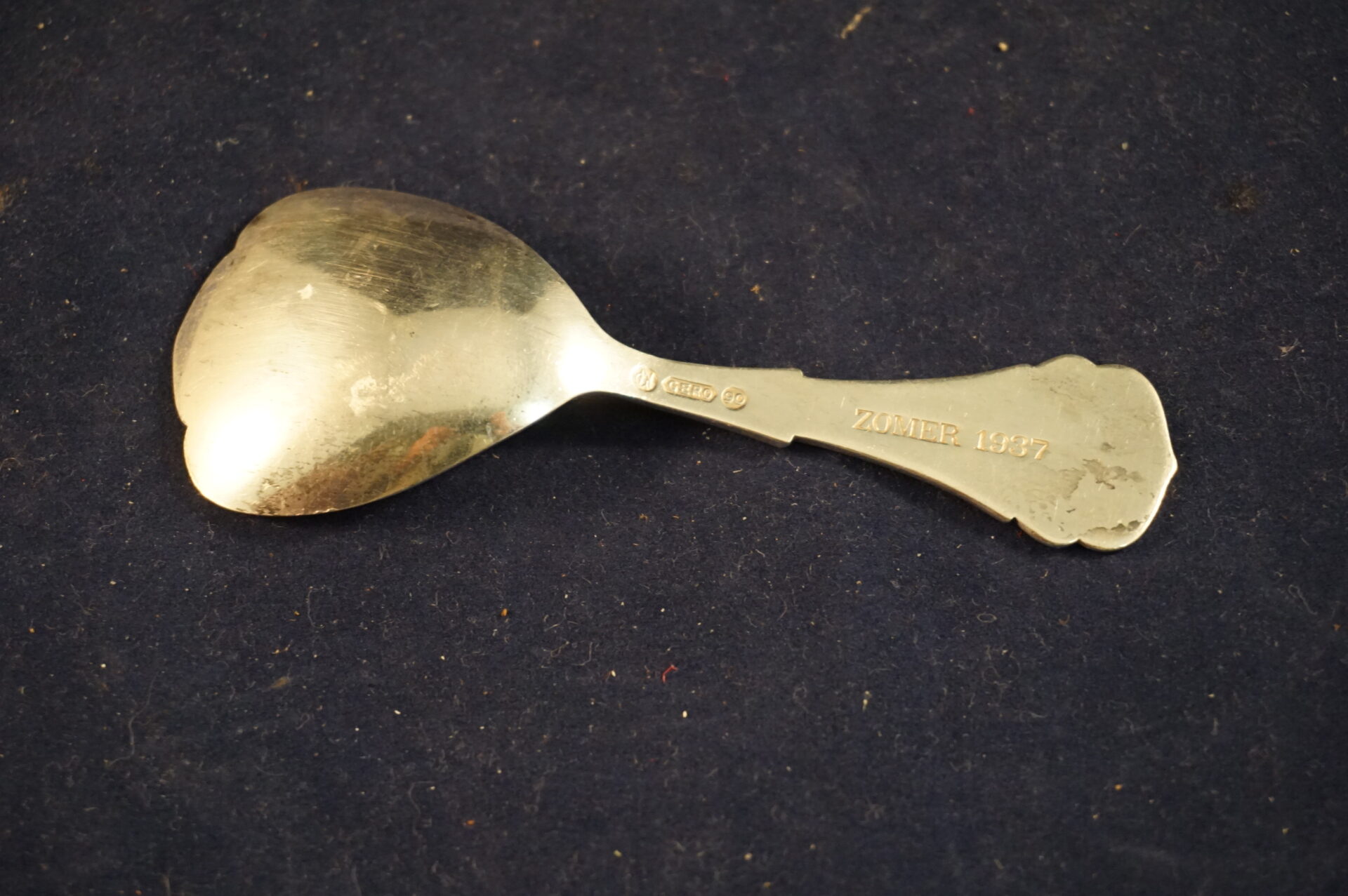 Theeschepje uit de Avroserie van Nilsson. Achterop het schepje de teks: “Zomer 1937”.