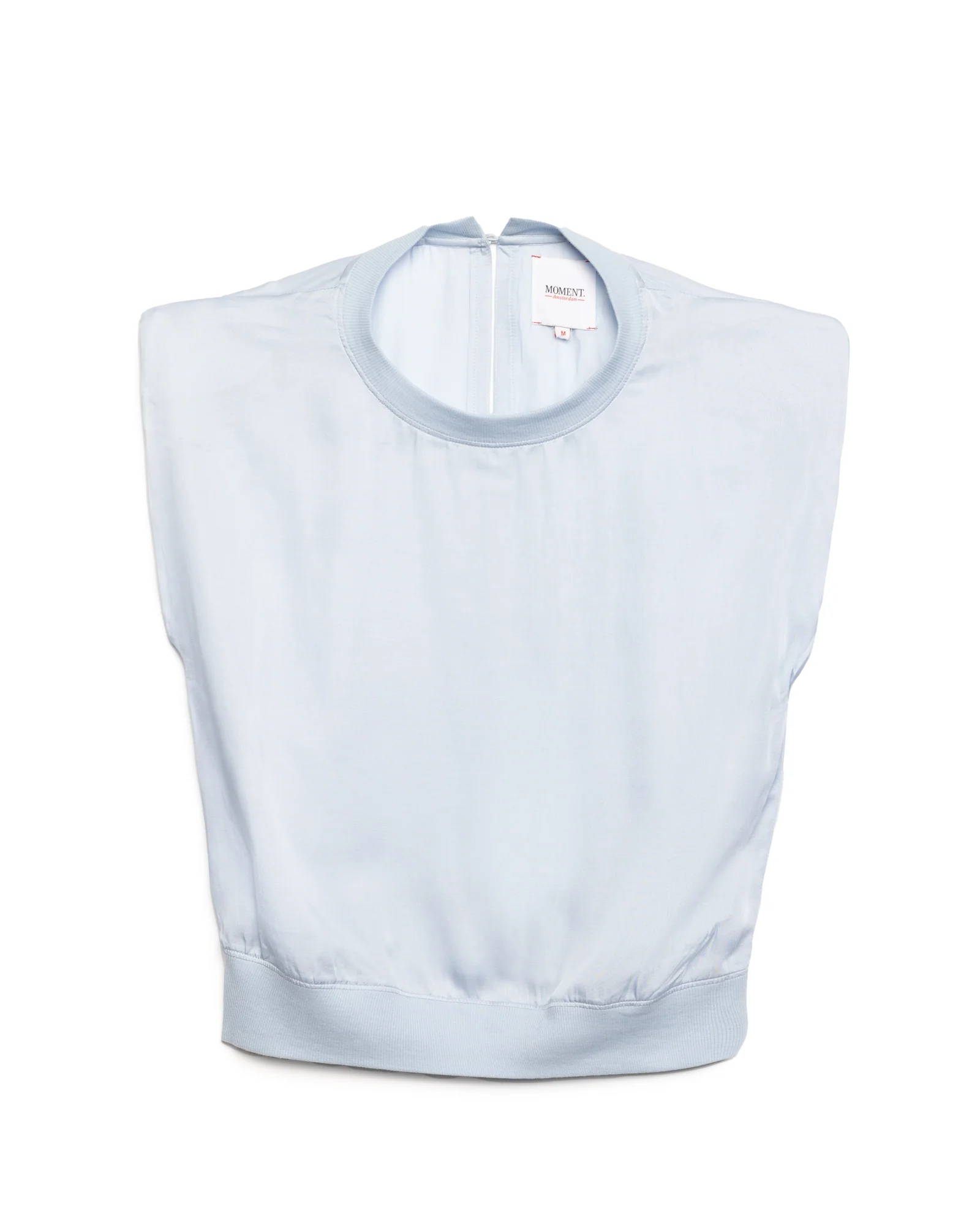 Top Aria van de Moment Amsterdam Collectie is een soepel vallende mouwloze top met ronde hals en band. Combineer deze mooie glanzende top met rok Ajenne van dezelfde stof.
