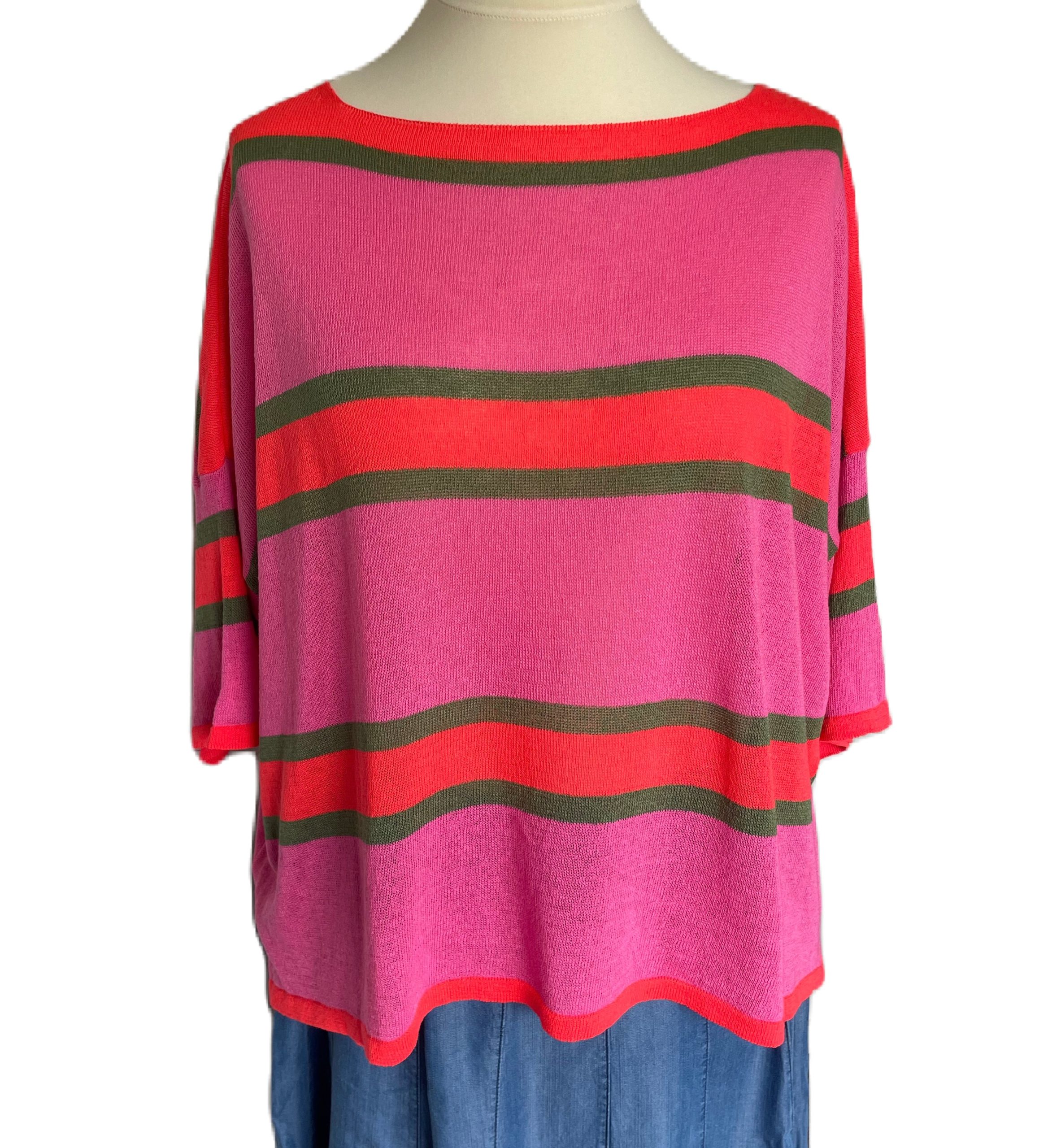 Top Imre is een fijne knitwear, katoenen top met boothals, korte mouwen en een strepen patroon in het materiaal. De top is verkrijgbaar valt wijd en is in één maat verkrijgbaar.