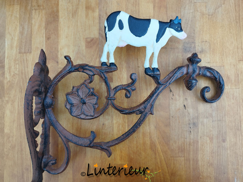 Gietijzeren touwhouder met een afmeting van 11 x 8 x 16 cm.