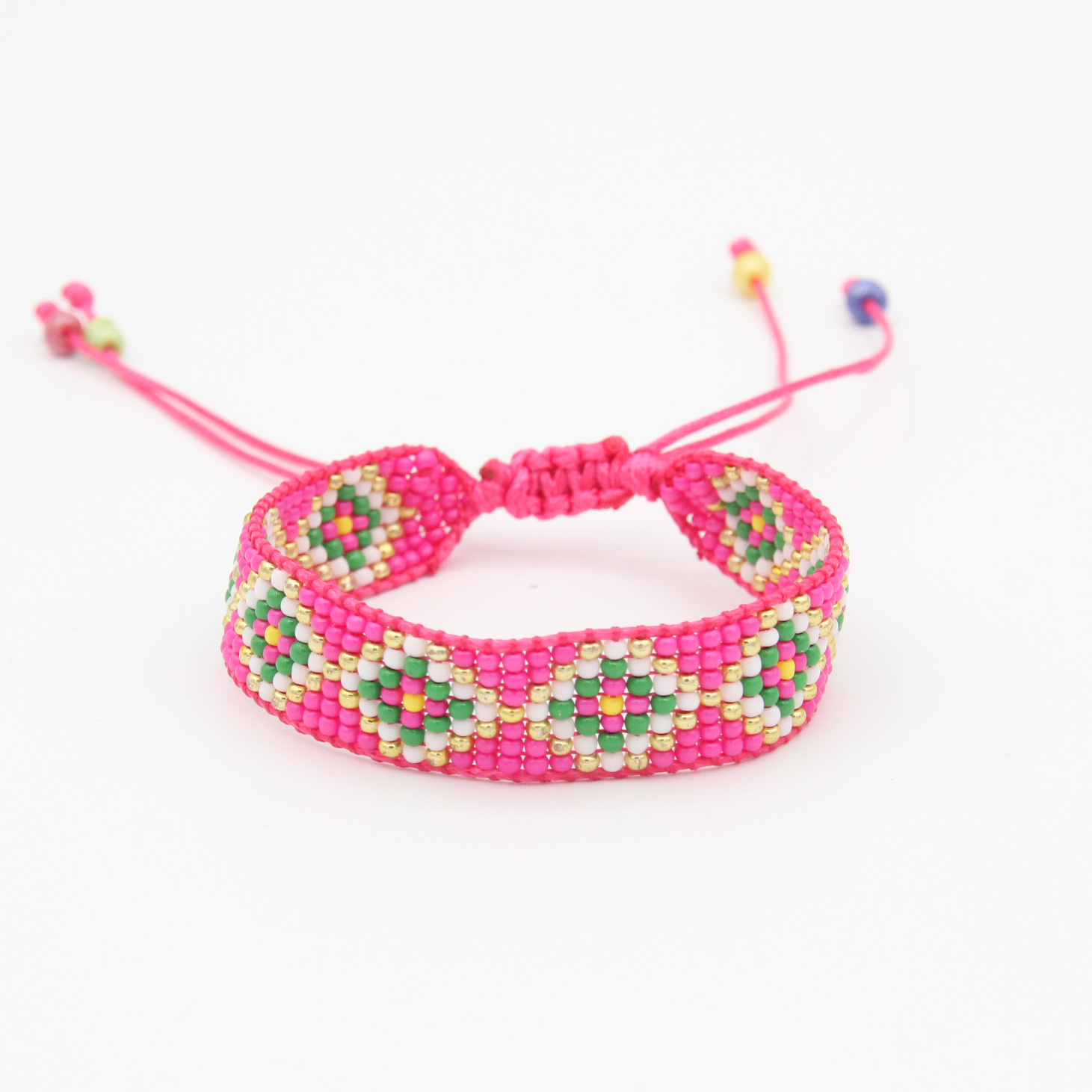 Sieraden| Trendy armband of enkelbandje| Pink en white| Ibiza look| Nylon en glas| DitzDatz