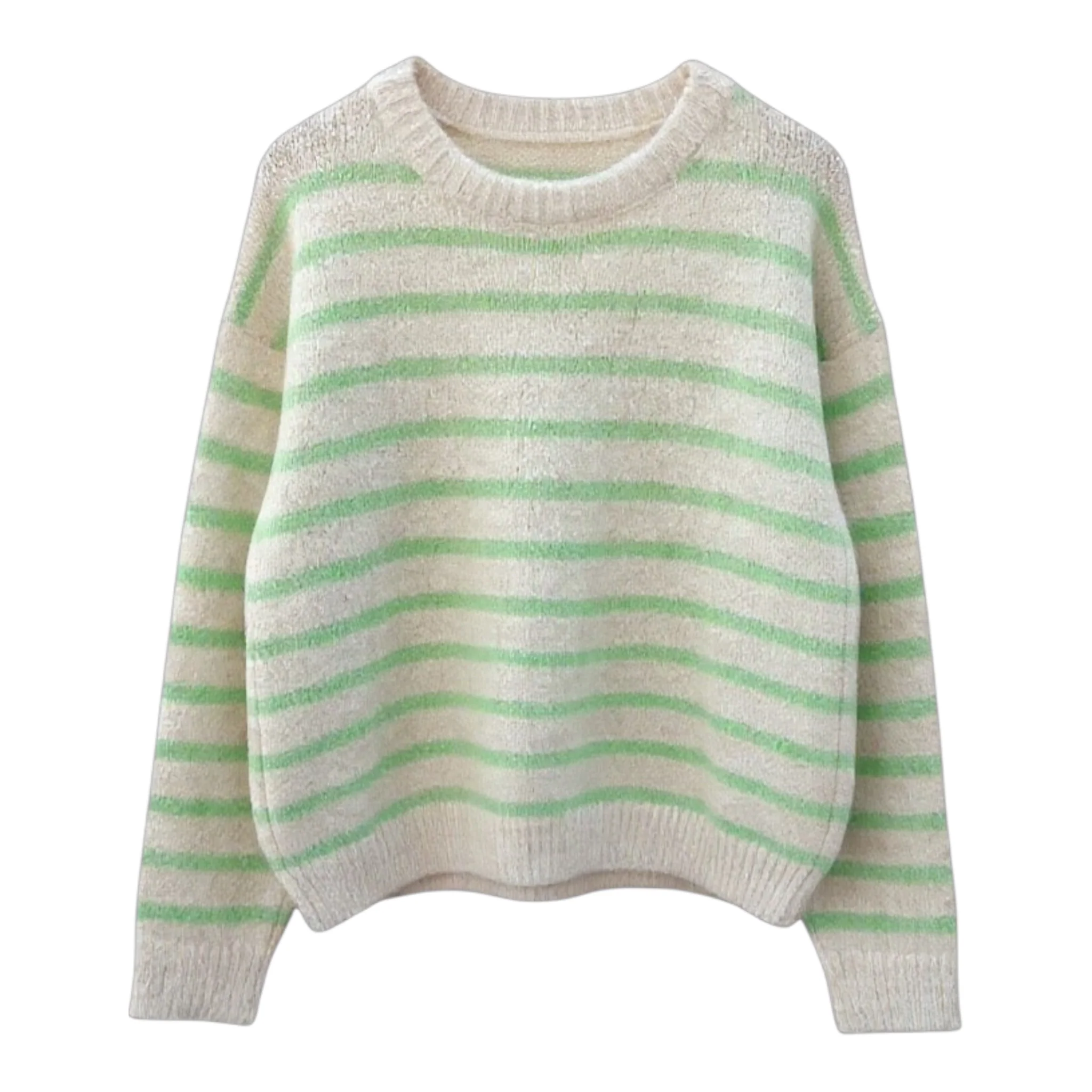 Heerlijk Zacht Gestreepte Trui, een knitwear van Kilky met ronde hals, in de kleurencombinatie beige met mintgroen.