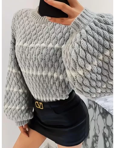 Trui Kaylinn Grijs is een heerlijk zacht grof gebreide korte trui met gestreept patroon. Trui heeft lange ballonmouwen en een rib gebreide boord aan de halslijn, onderkant en onder aan de mouwen. Trui Kaylinn is verkrijgbaar in één maat, is geschikt voor maat S t/m XL, en verkrijgbaar in verschillende kleuren: grijs, zwart.