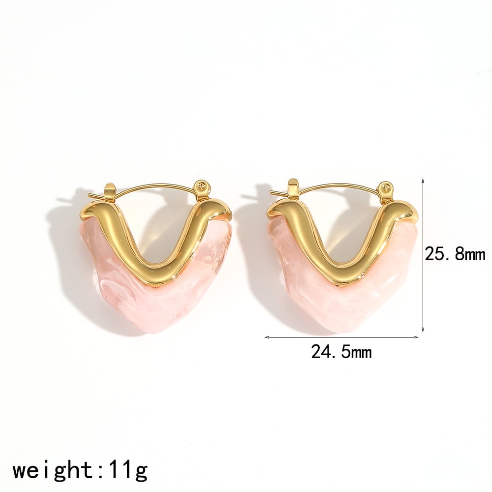 De oorringen zijn gemaakt van duurzaam stainless steel, waardoor ze lang mooi blijven en hun glans behouden. De U-vorm zelf is gemaakt van hars, wat zorgt voor die zachte pasteluitstraling en een lichte, comfortabele draagervaring.