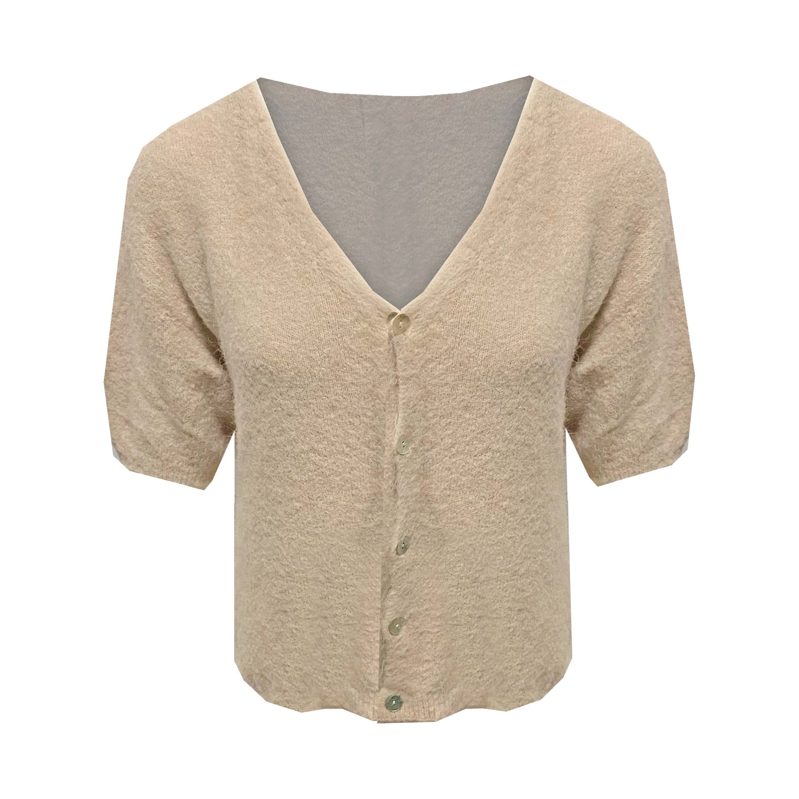 Kort Gebreid Zacht Vest van Baby Alpaca is een trendy item met V-hals, korte mouwen en knopen. Dit vest is ongeveer 60cm lang en is te dragen voor maat S t/m XL, heeft veel stretch, draagt heerlijk.