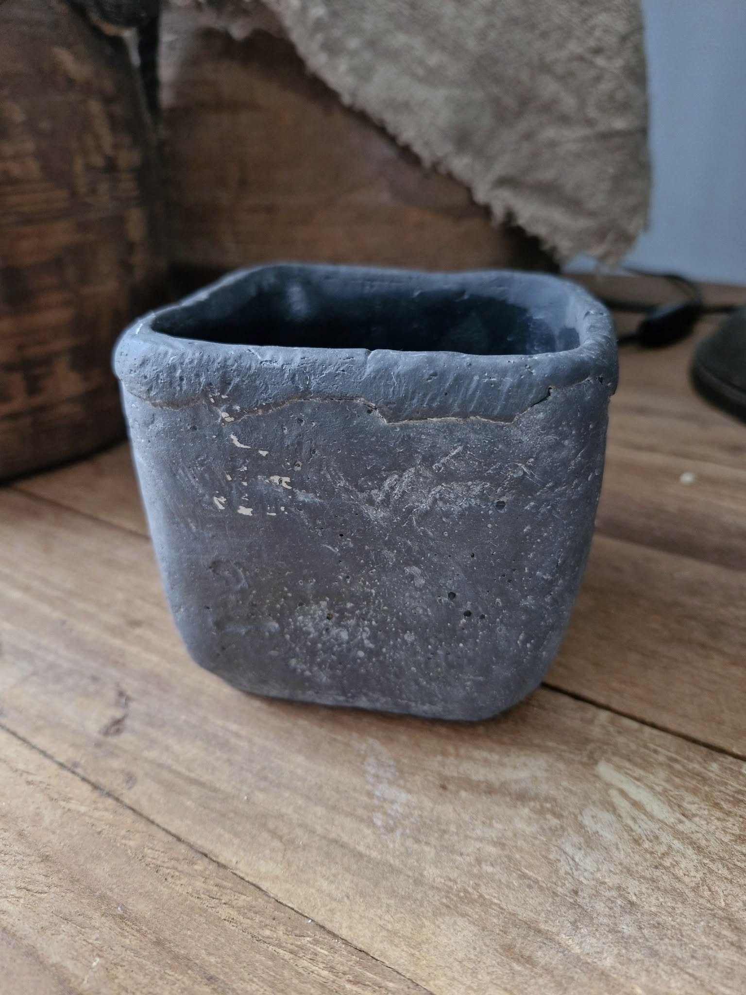 Vierkante aardewerk pot