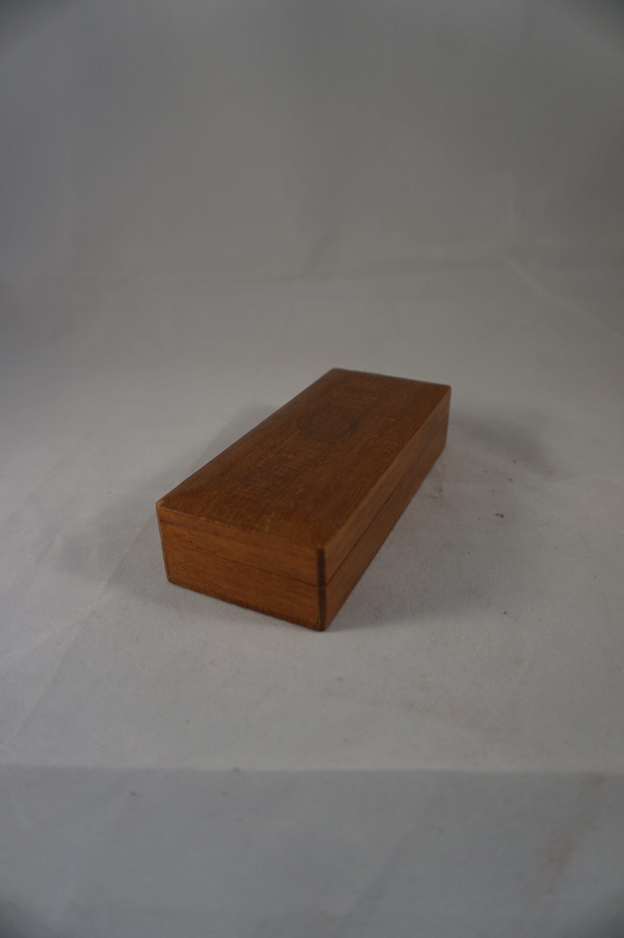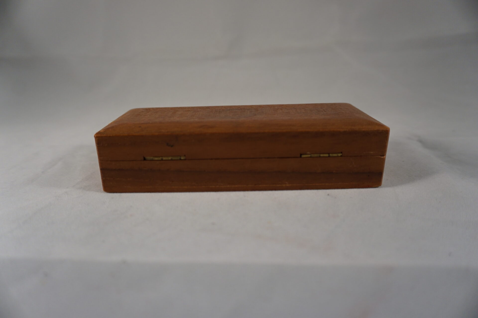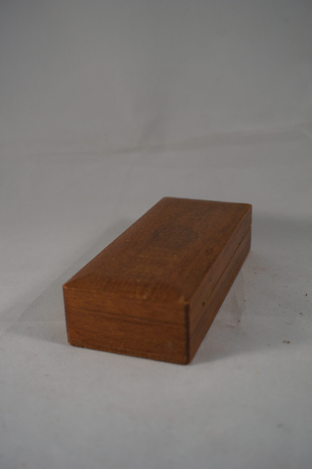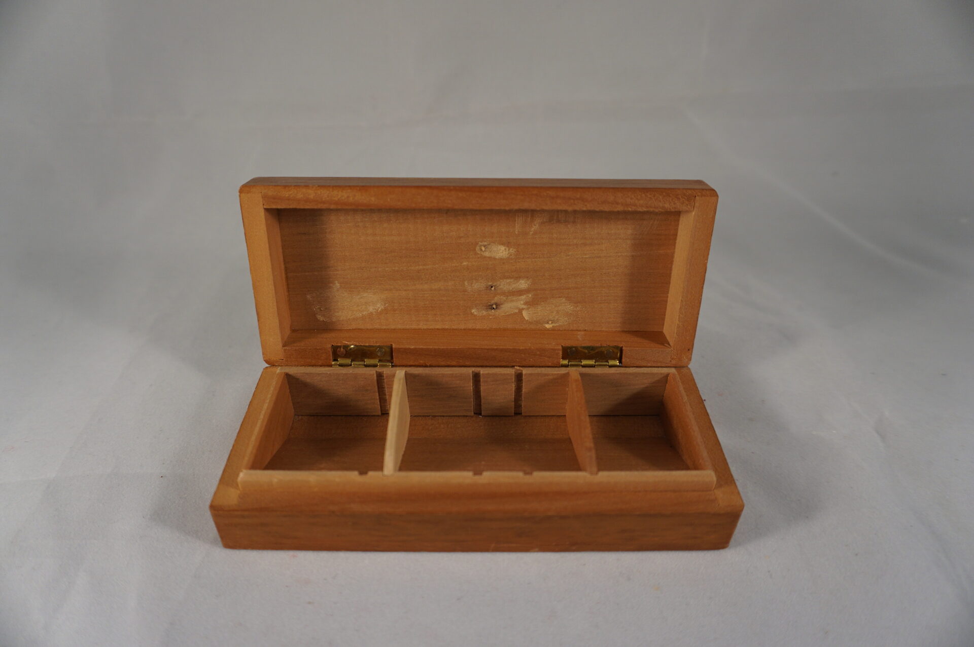 Vintage kistje voor postzegels. Het kistje is verdeeld in drie vakjes, waarbij 2 vakjes aangepast kunnen worden door een los tussenschotje.