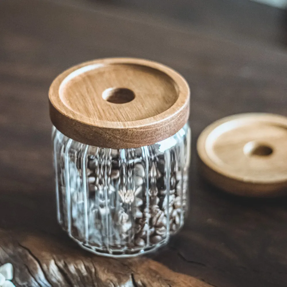 Organiseer je keuken in stijl met onze geribbelde voorraadpotten met acacia deksels. Gemaakt van hoogwaardig borosilicaatglas en acacia hout, en beschikbaar in drie maten: 300 ml, 500 ml en 700 ml. Perfect voor voedselopslag en een aanwinst voor elk esthetisch interieur!