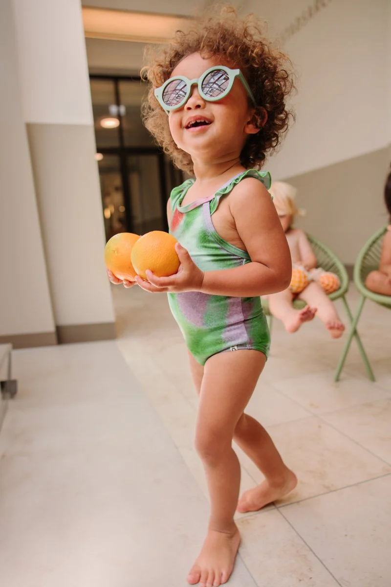 Laat jouw dochter shinen in badpak Yua. De ruffles op de schouderbandjes geven het badpak een lieve uitstraling, maar de unieke print geeft het badpak ook een stoere touch! Gemaakt van gerecycled polyester.